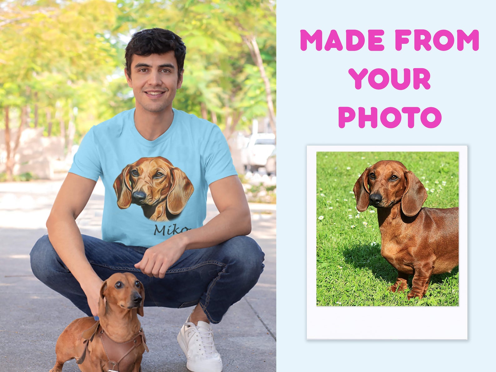 Custom Dog Photo to illustrated Unisex Tshirt, Personalized Name and Photo T-shirt