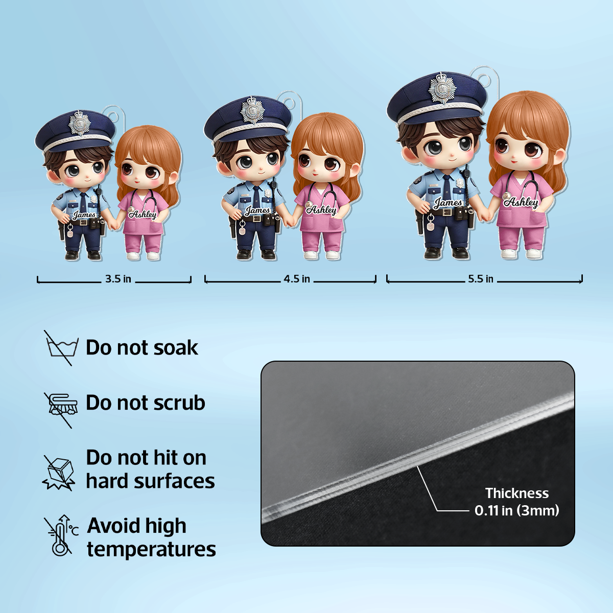 Cute Cartoon Couple Gift by Occupation Gift For Her Gift For Him Personalized Acrylic Car Hanger, Anniversary Gift For Couple