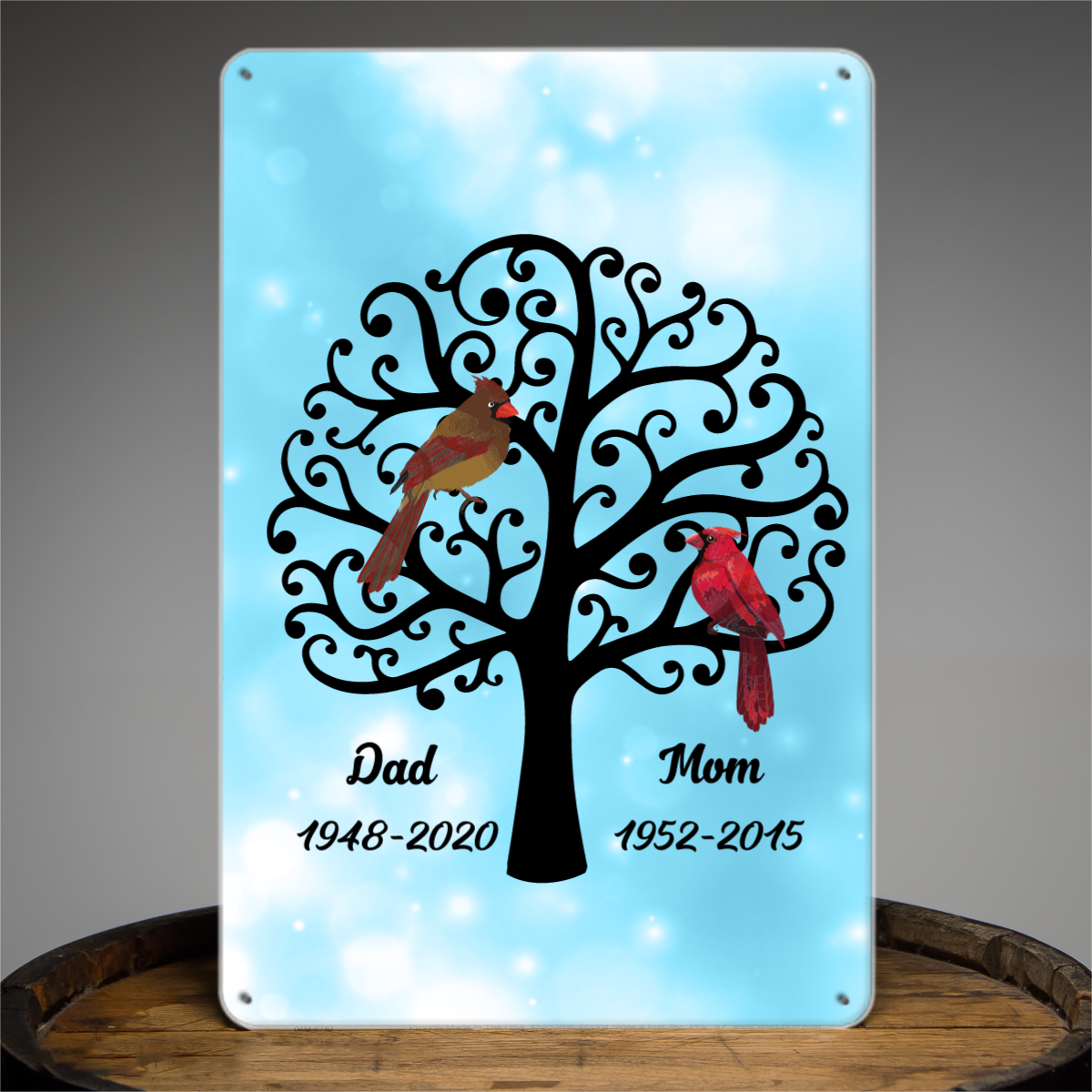 Dad And Mom Cardinals Memorial Personalized Tin Signs
