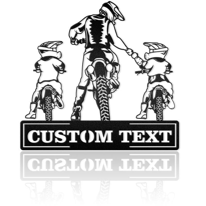 (Up to 4 Kids) Dad & Son Motorcross Rider Biker Motorcycle Metal Wall Art