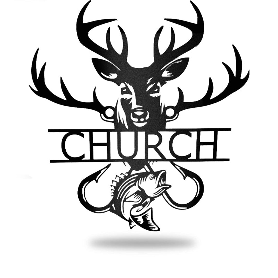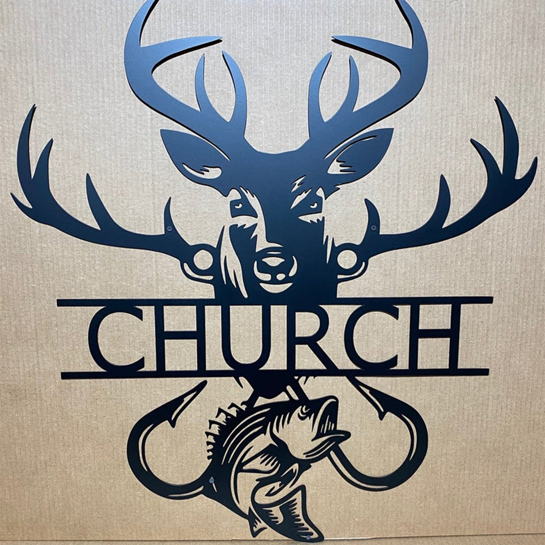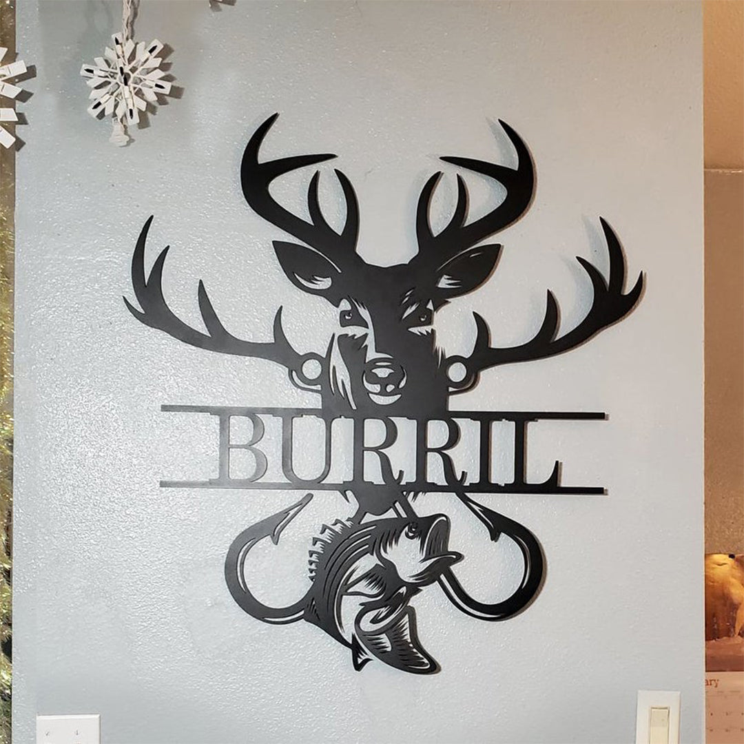 Deer Hunting Fish Hook Custom Name Personalized Metal Hunting Sign