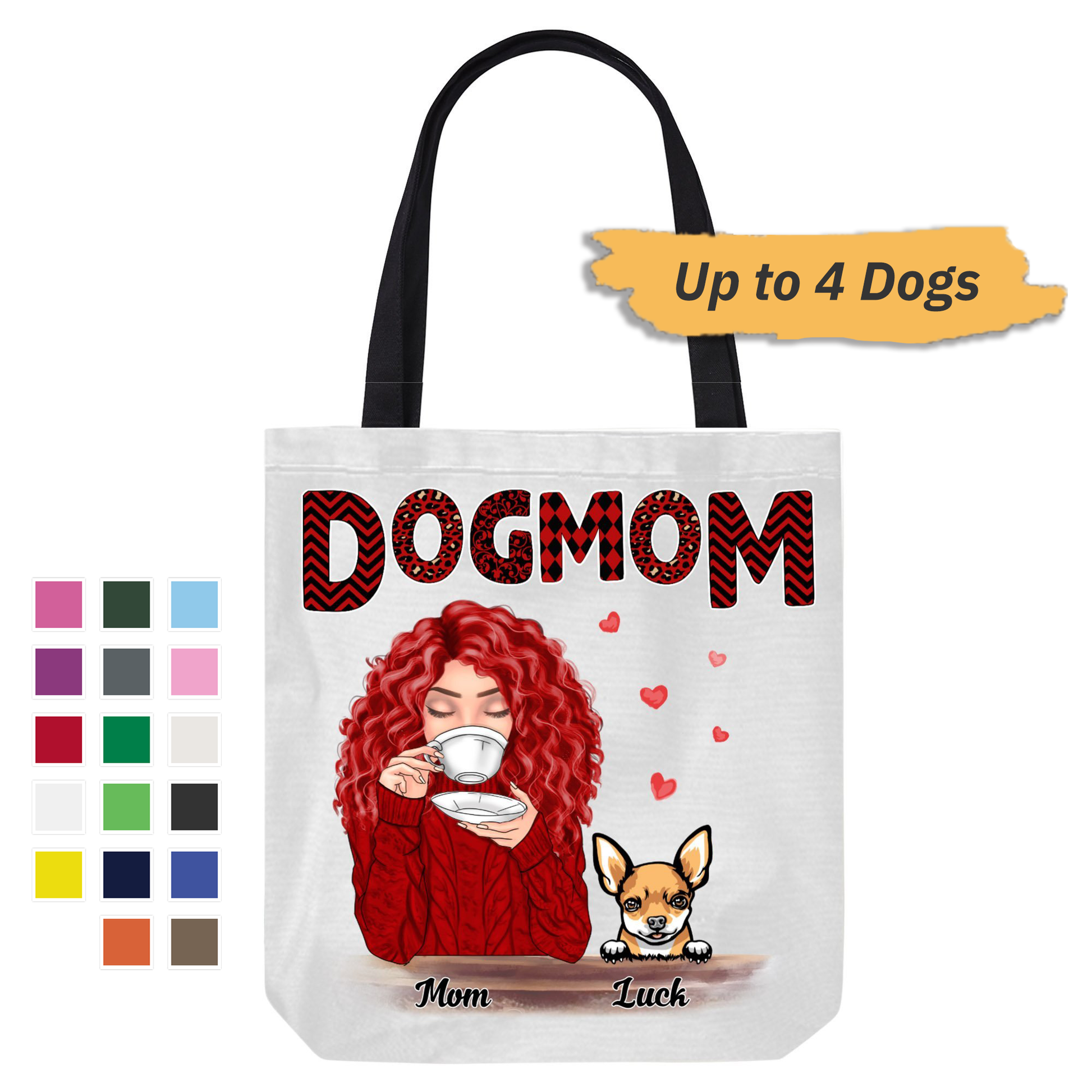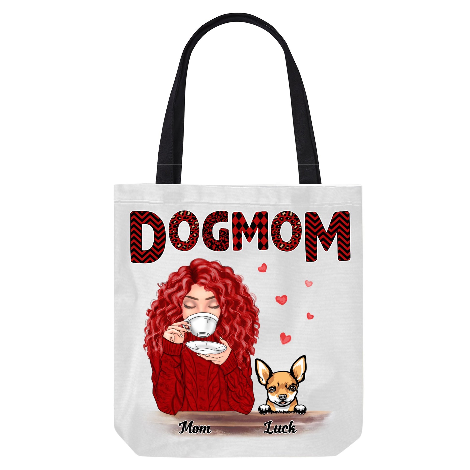Dog Mom Red Patterned Personalized Canvas Bag