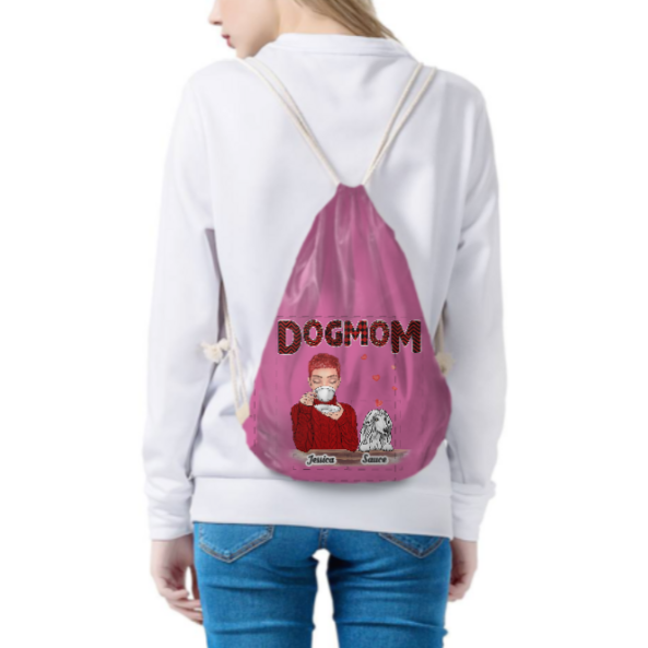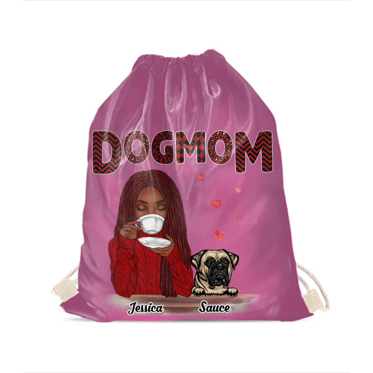 Dog Mom Red Patterned Personalized Drawstring BackPacks