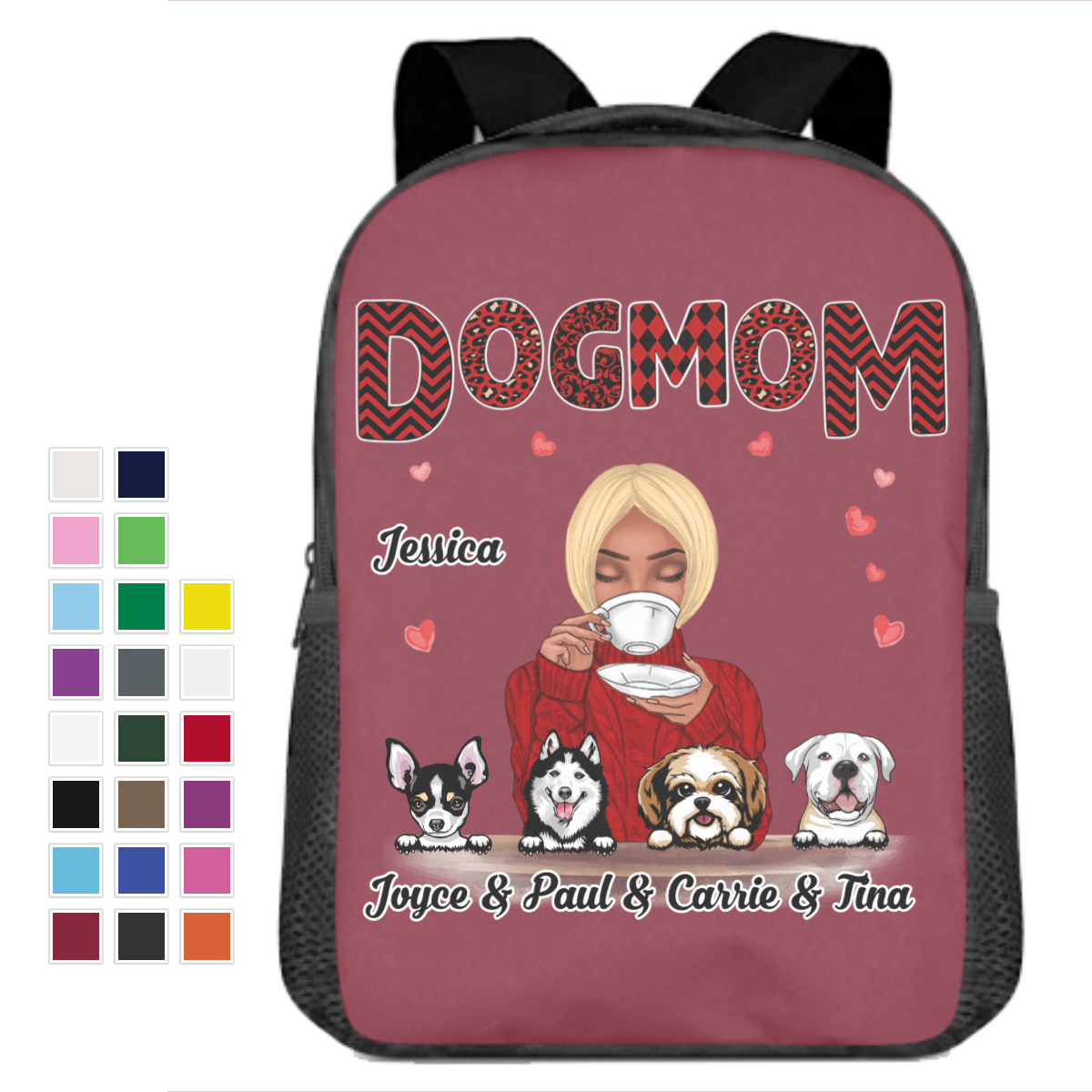 Dog Mom Red Patterned Personalized Leisure Outdoor Sports School Bag