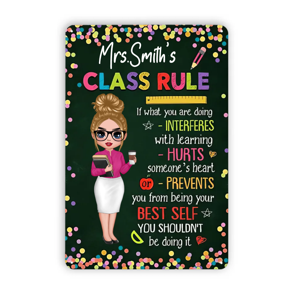 Doll Teacher Class Rule Personalized Metal Signs