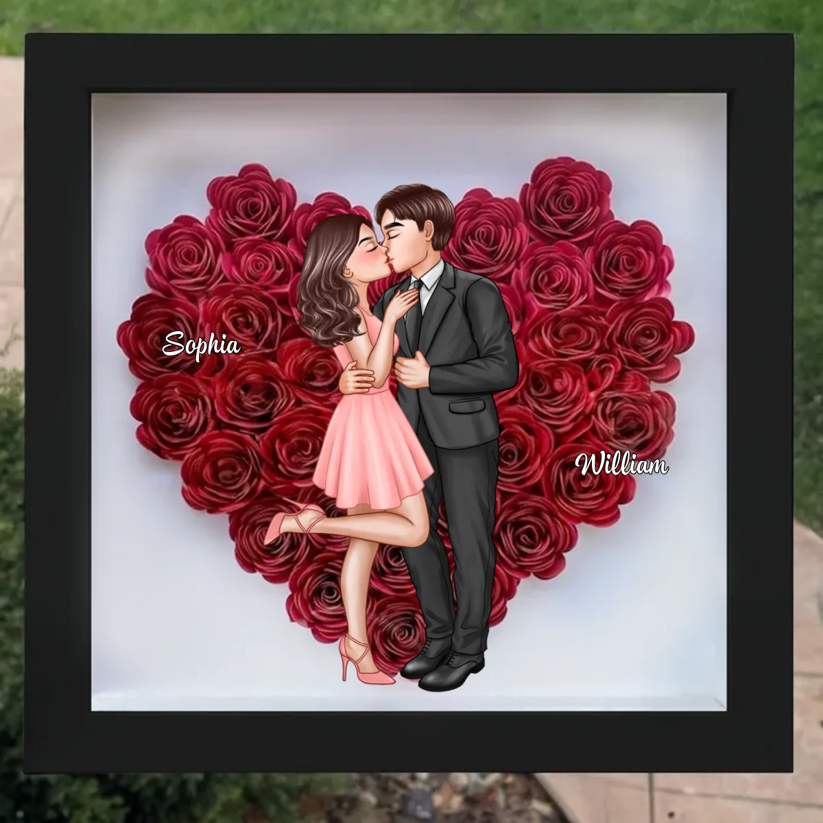 Elegant Couple Hugging Kissing Personalized Custom Heart Rose Shadow Box