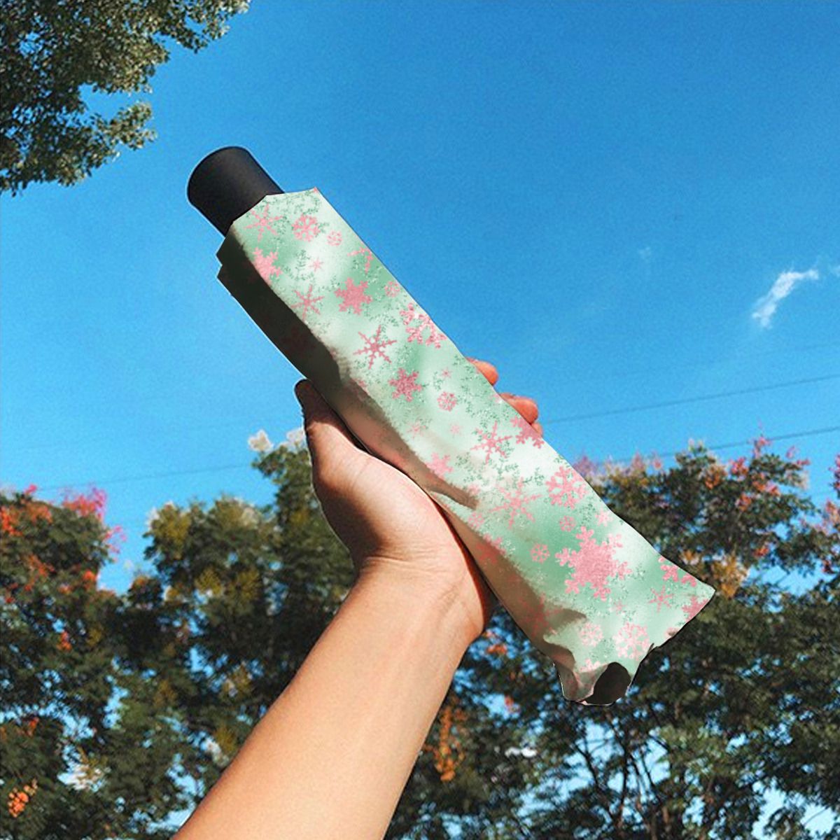 Elegant Green Pink Christmas Snowflake Pattern Brushed Polyester Umbrella No.HMILZC