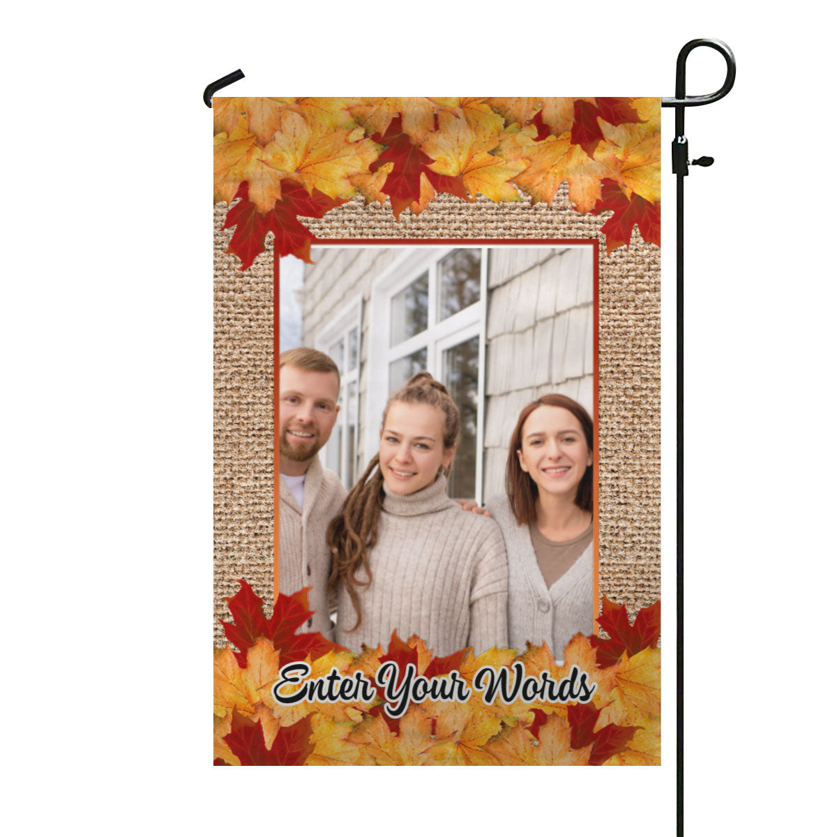 Fall Leaves and Burlap – Personalized Photo & Name – Garden Flag & House Flag