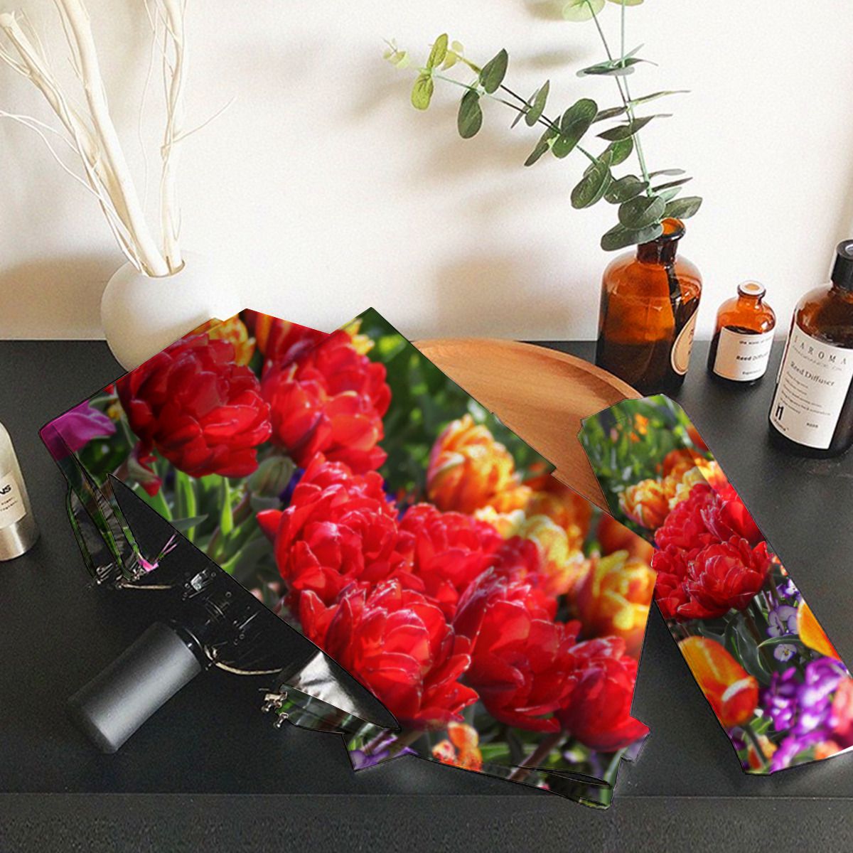 Falln Floral Crimson Waves Brushed Polyester Umbrella No.2VRGJP