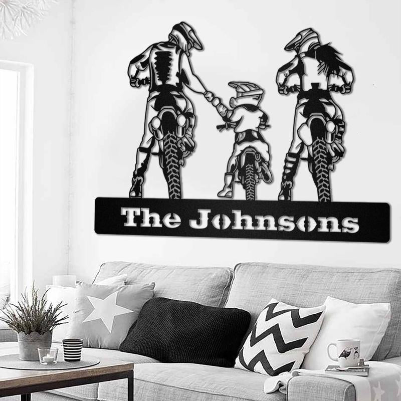 Family Motocross Motorcycle Bike Gift For Dad Father's Day, Motorcycle Metal Wall Art