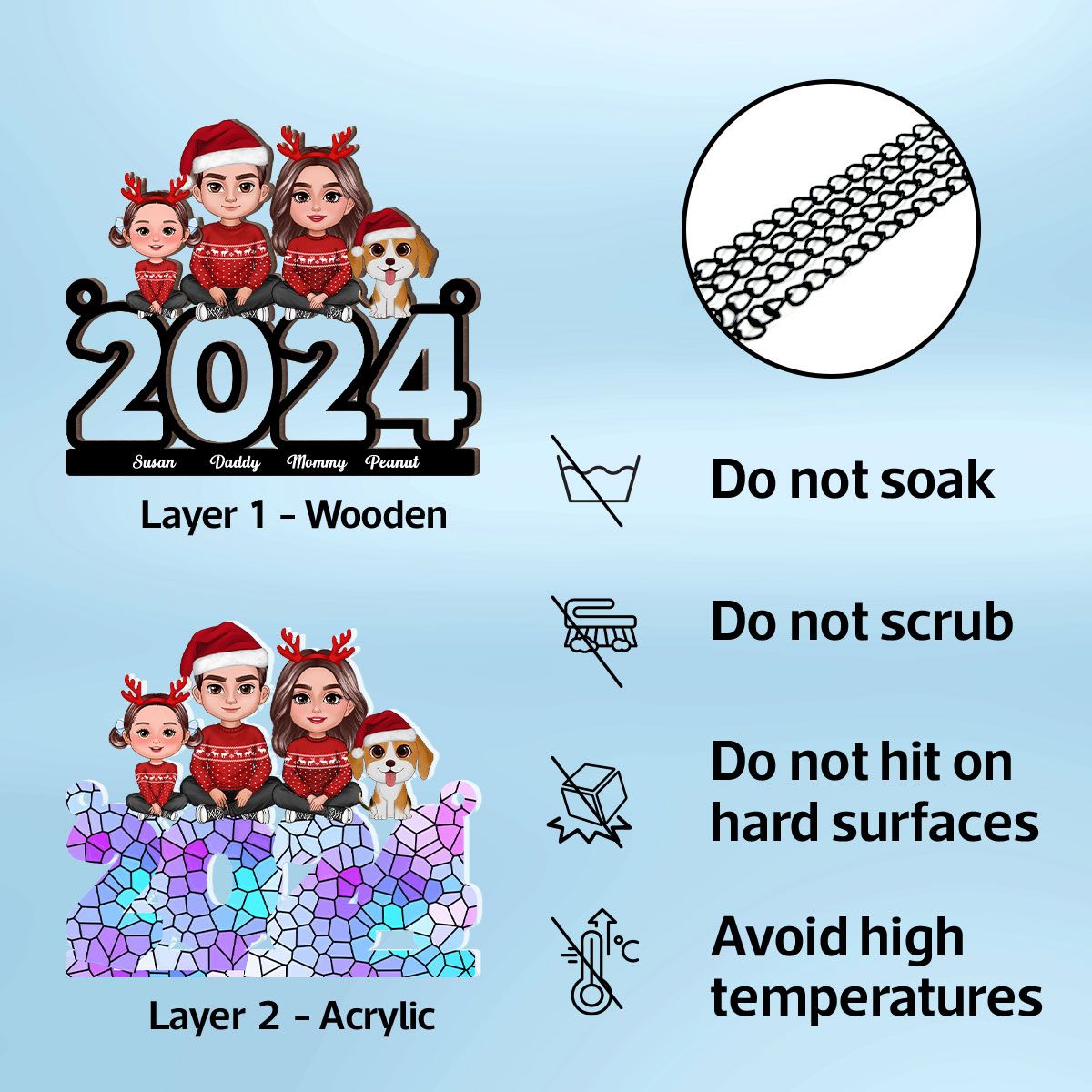 Family Sitting 2024 Personalized Window Hanging Suncatcher Ornament, Christmas Decor