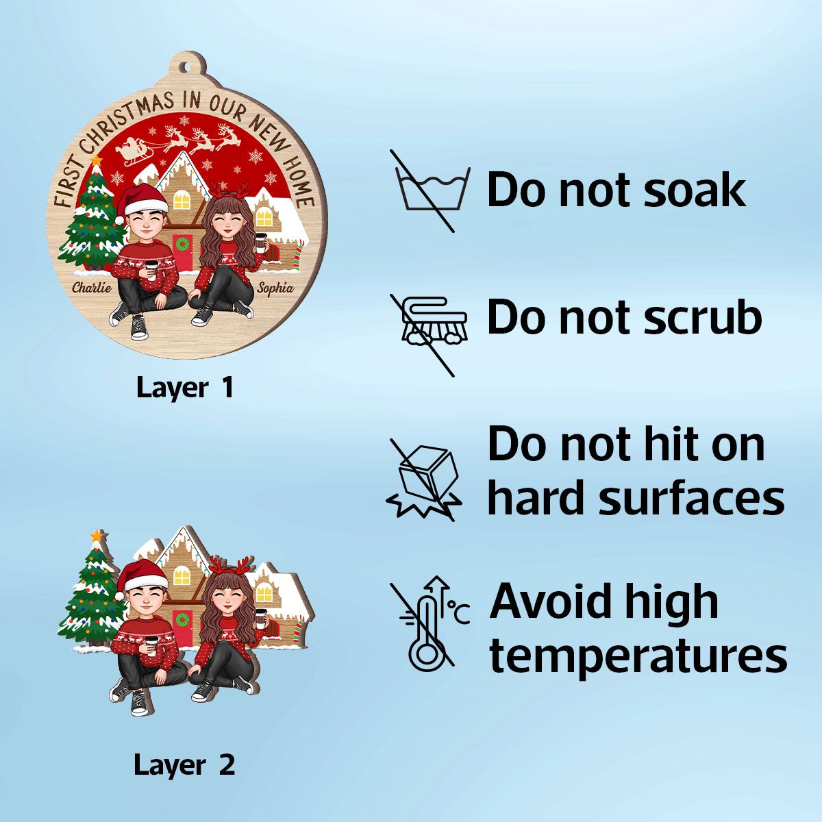 First Christmas In Our New Home Couple Sitting Personalized 2-Layer Ornament