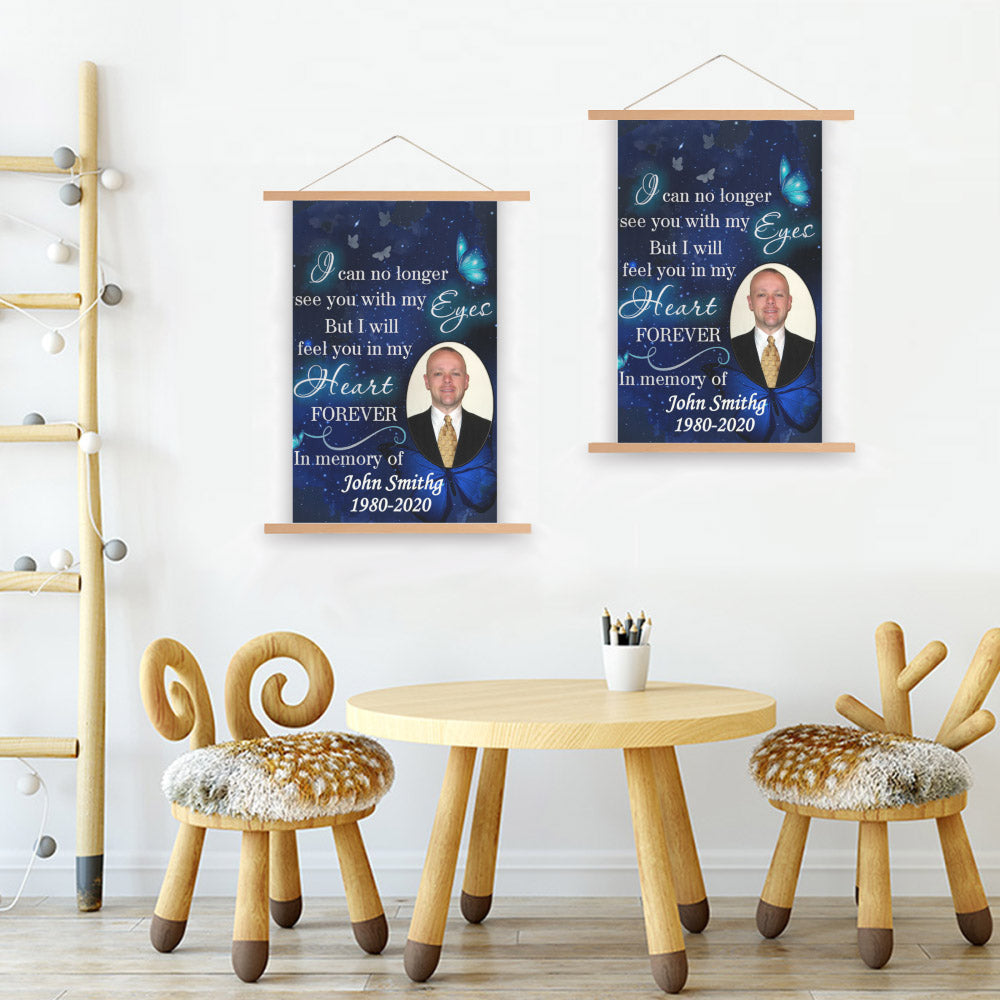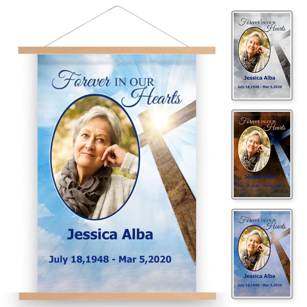 Forever in our Hearts Cross Personalized Photo Memorial Scroll Painting With Wooden Poster Hanger