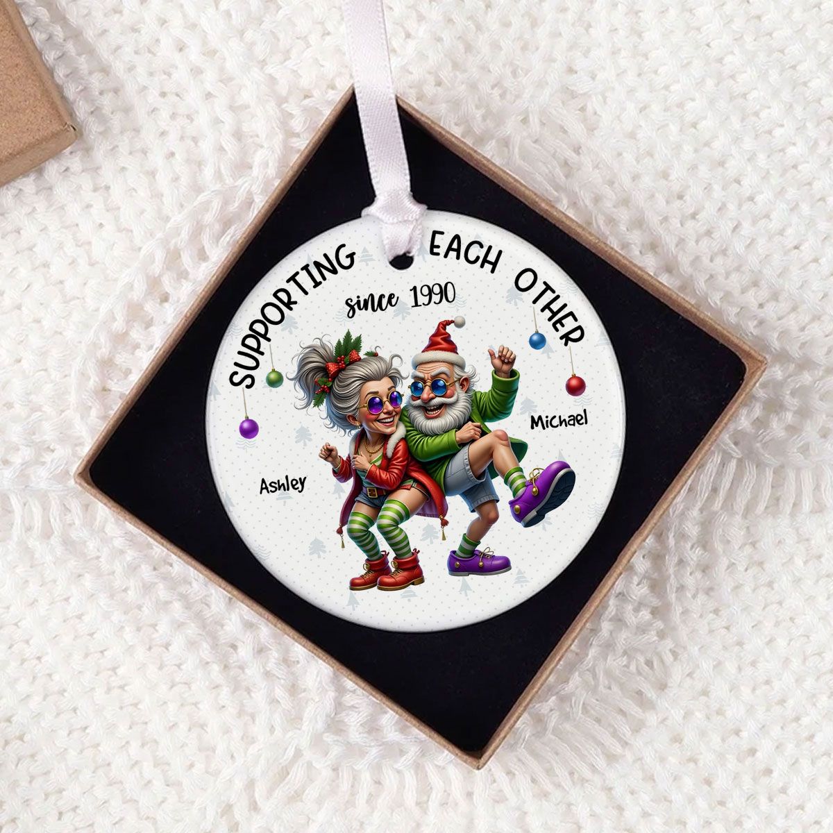 Funny Elderly Couple Christmas Party Whimsical Holiday Personalized Ceramic Ornament