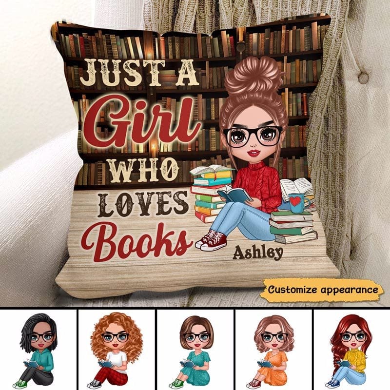 Girl Loves Books Doll Gift For Book Lovers Bookworms Personalized Pillow