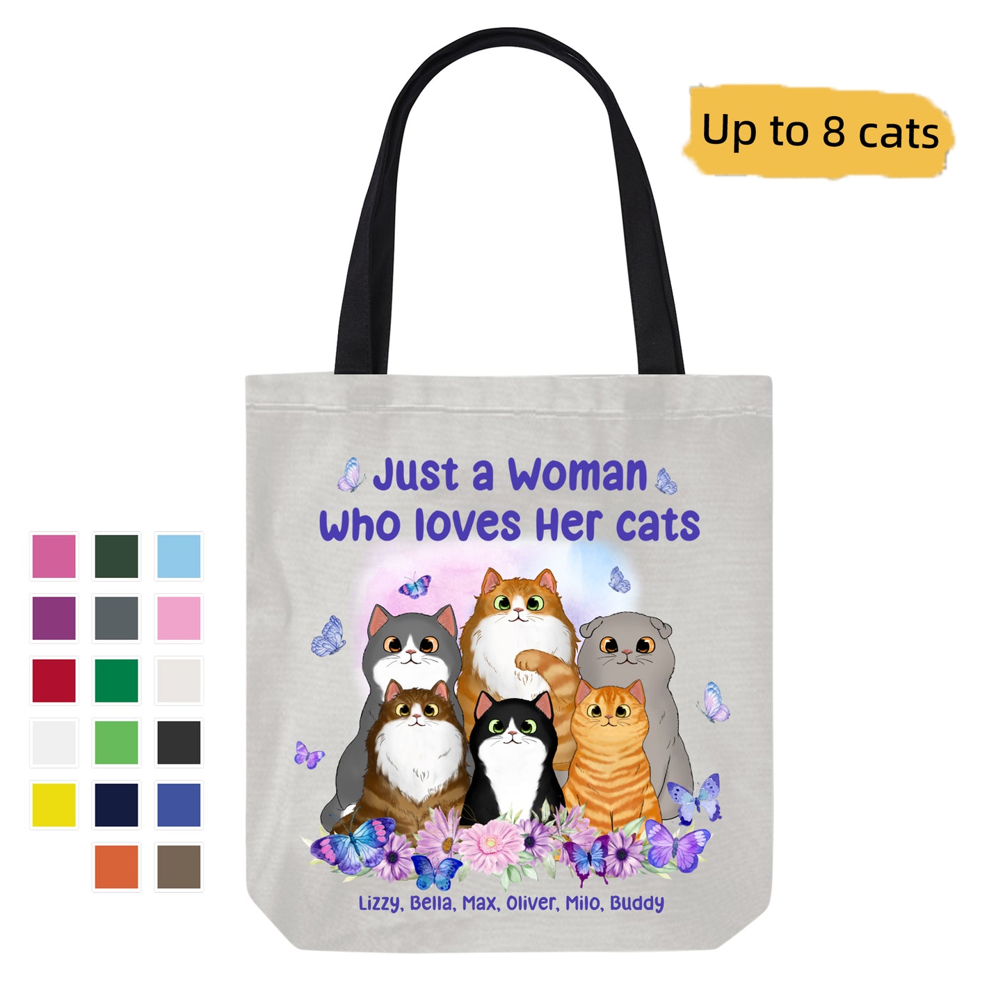 Girl Loves Fluffy Cat Butterfly Personalized Canvas Bag