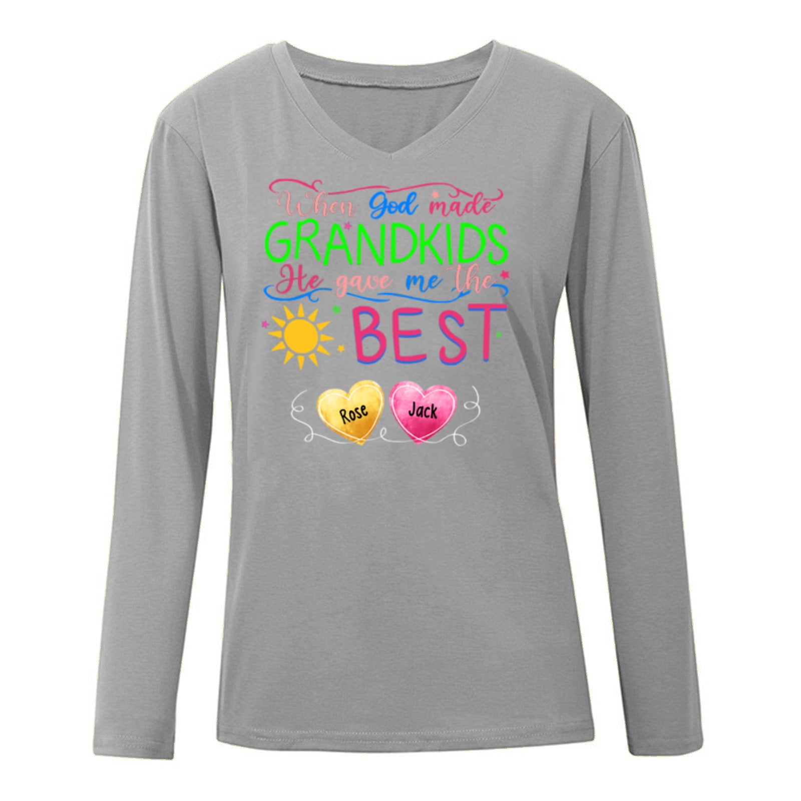 God Gave Me The Best When Made Grandkids Grandma Grandpa Personalized Long Sleeve Shirt