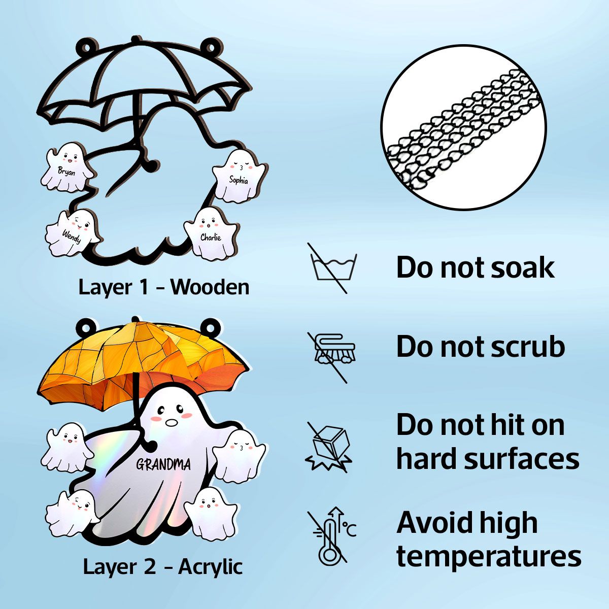 Grandma Funny Ghost with Umbrella Personalized Suncatcher, Halloween Stained Glass Decor