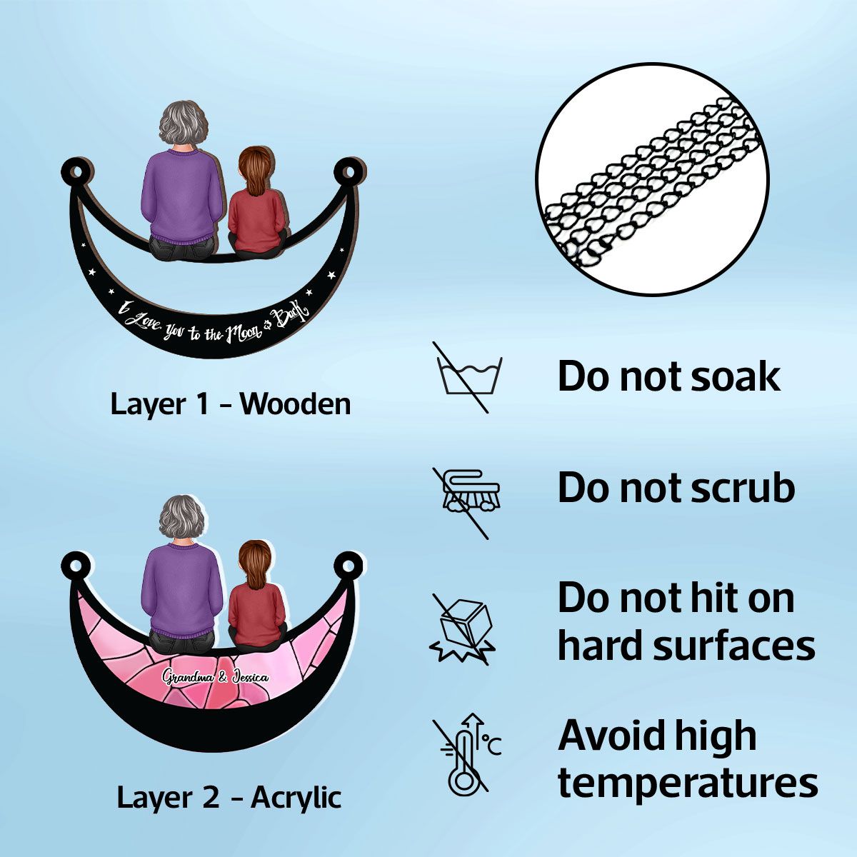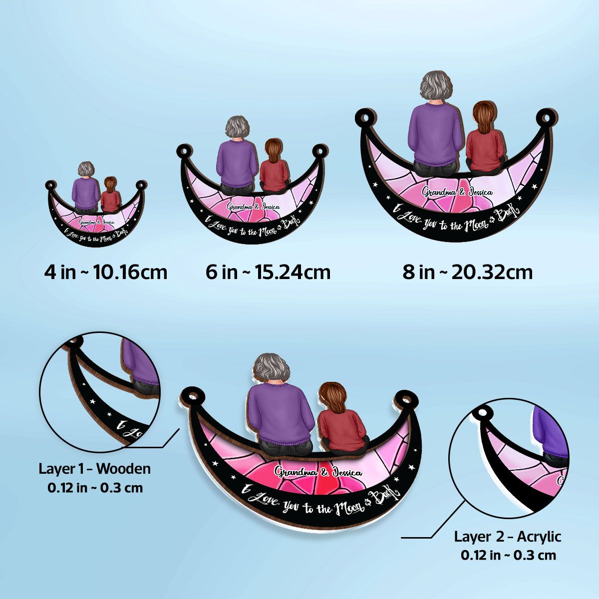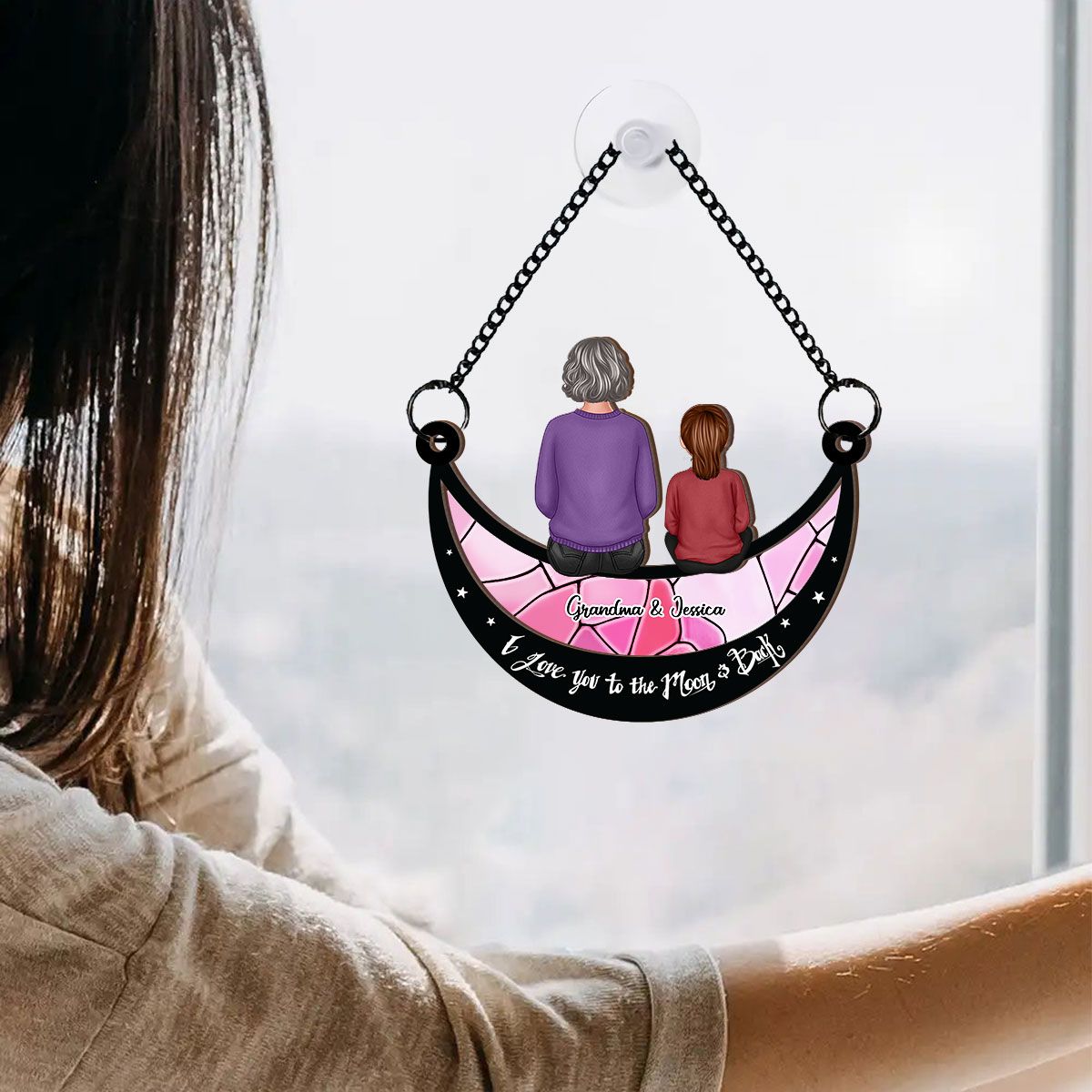 Grandma Grandkid On Moon Personalized Window Hanging Suncatcher Ornament, Christmas Gift For Granddaughter Grandson