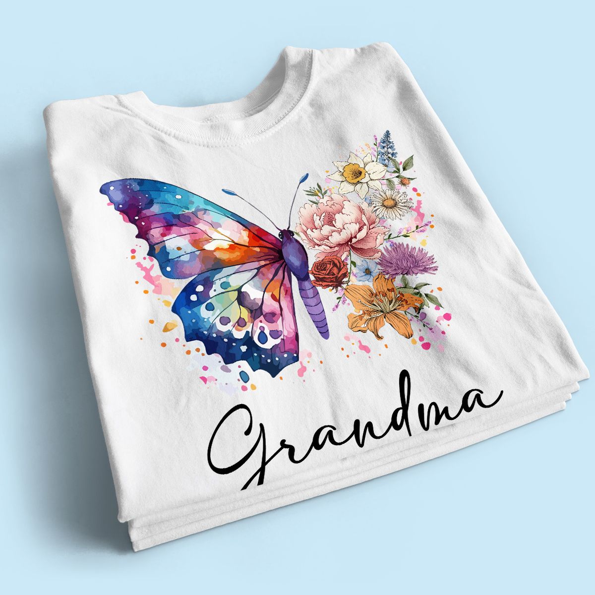 Grandma Mom Half Butterflies Birth Month Flowers Personalized Shirt