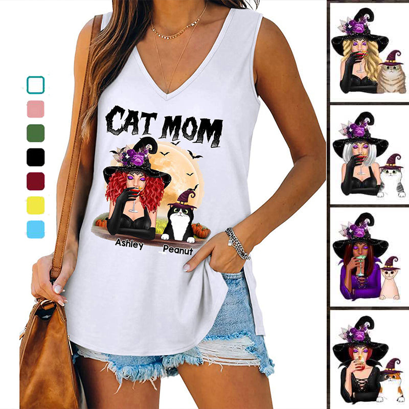 Halloween Witch Cat Mom Personalized Tank Top