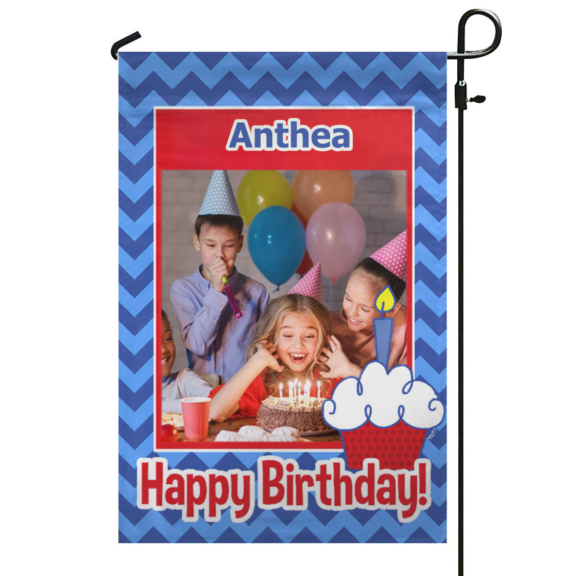 Happy Birthday Chevron – Personalized Photo & Name Garden Flag