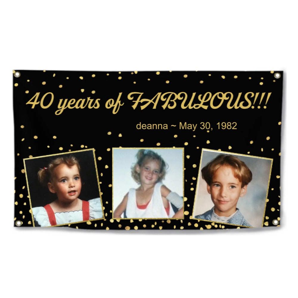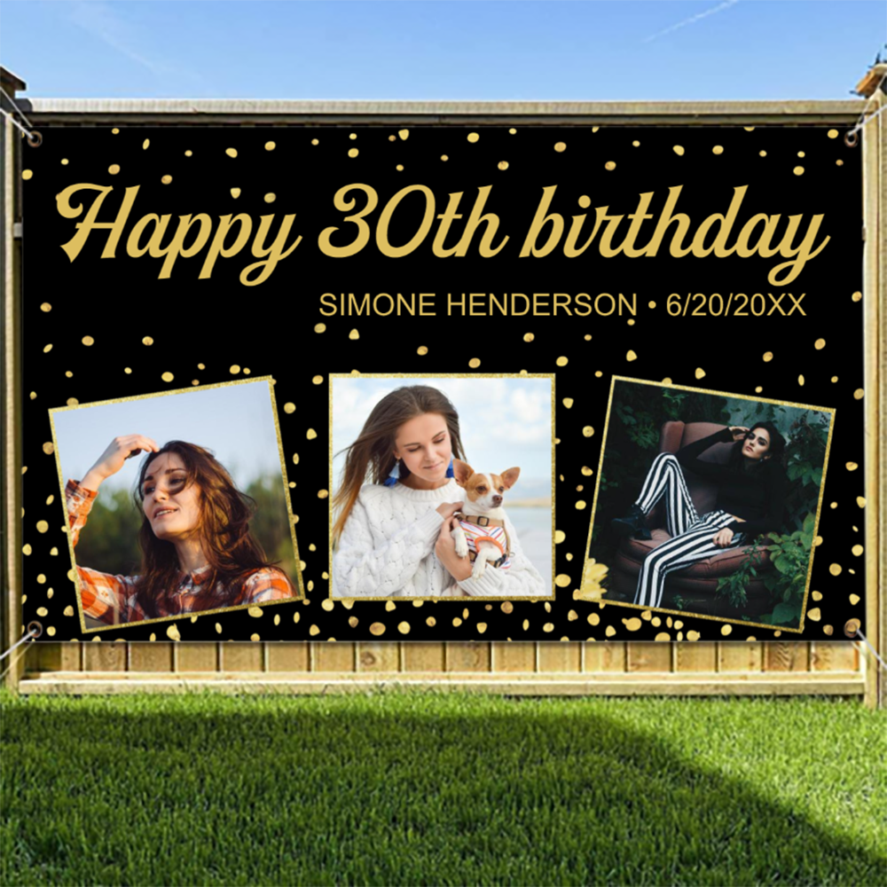 Happy Birthday Gold Glitter Photos Any Year Custom Banner
