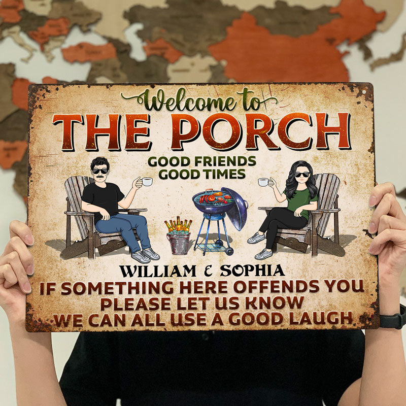 If Something Here Offends You Please Let Us Know Couple Husband Wife - Backyard Sign - Personalized Custom Classic Metal Signs