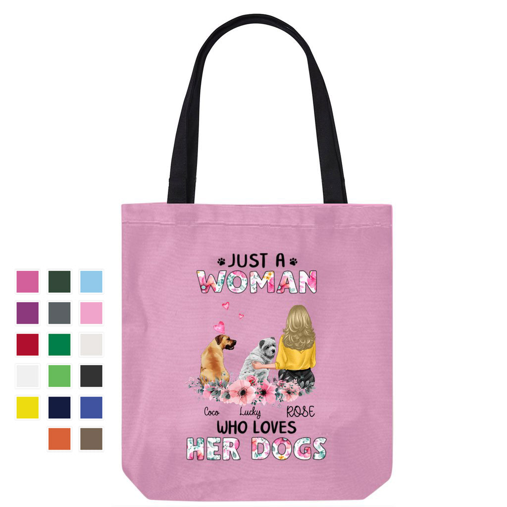 Just A Woman Who Loves Her Dog Floral Personalized Canvas Bag