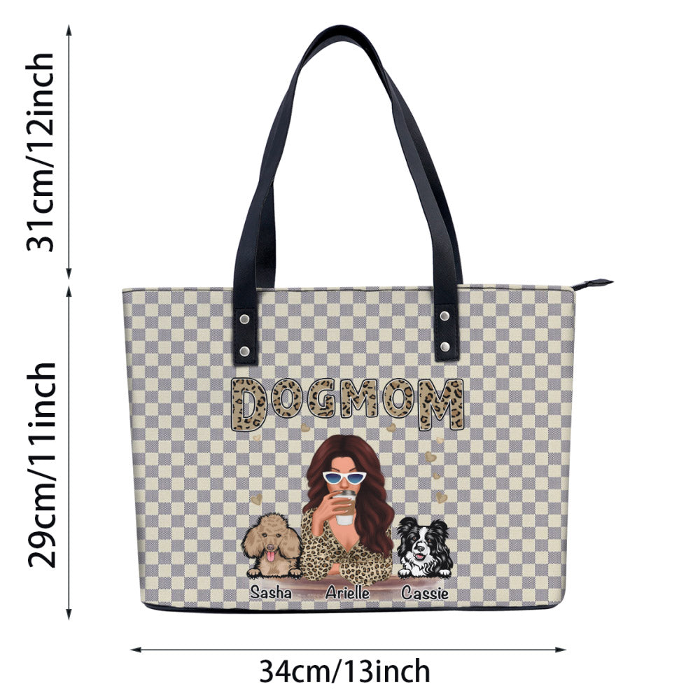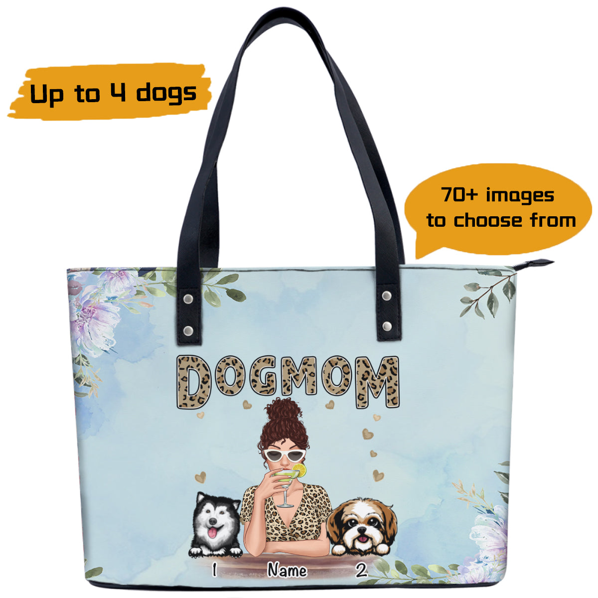 Leopard Shirt Dog Mom Personalized Soft Leather Tote Shoulder Bag, Big Capacity Handbag