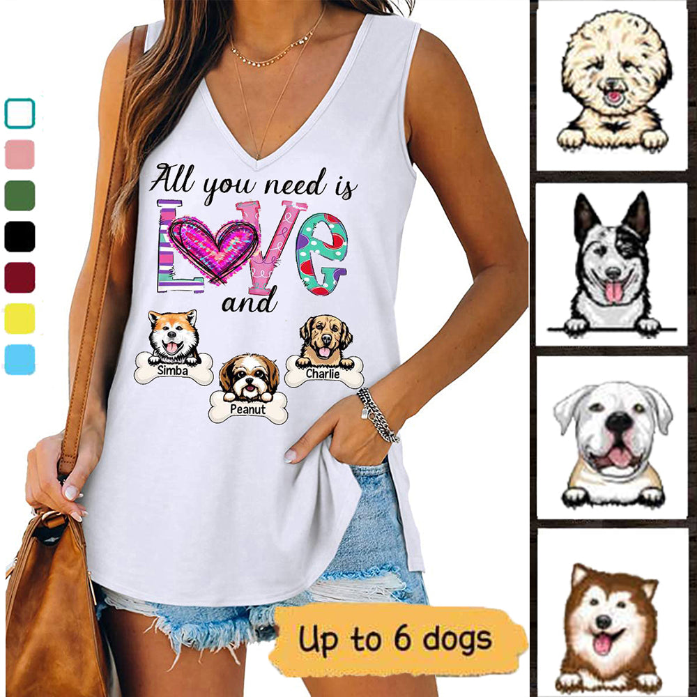 Love Pattern And Peeking Dogs Personalized Women Tank Top V Neck Sleeveless