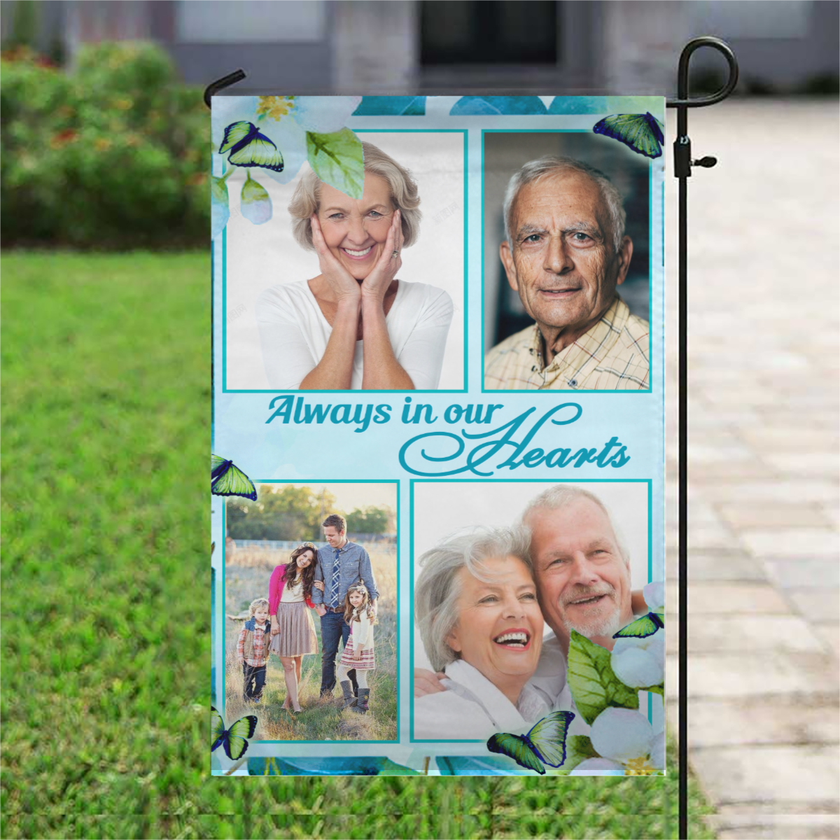 Always In Our Hearts 4 Photos Personalized Photo Memorial Garden & House Flag