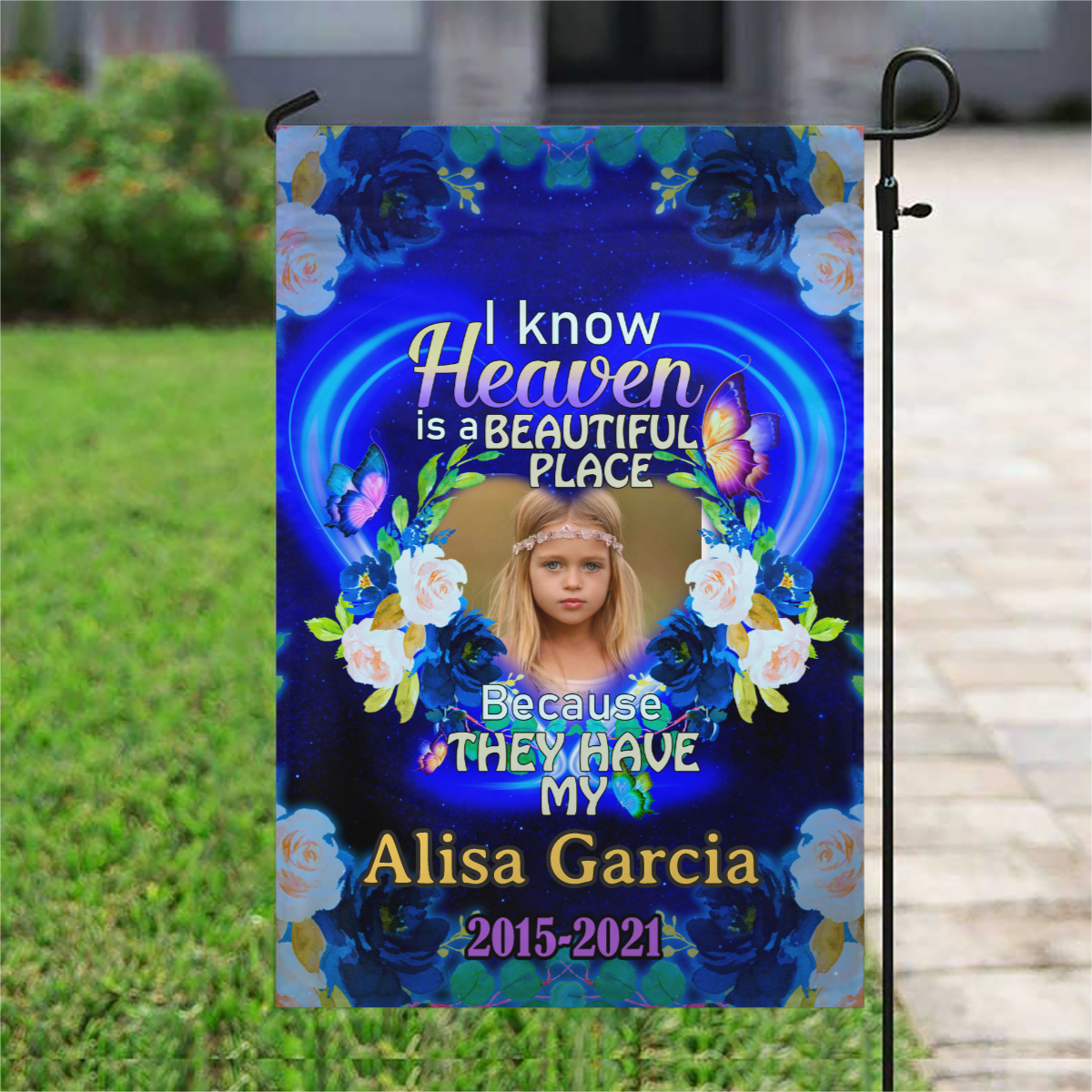 I Know Heaven Is A Beautiful Place Personalized Photo Memorial Garden & House Flag
