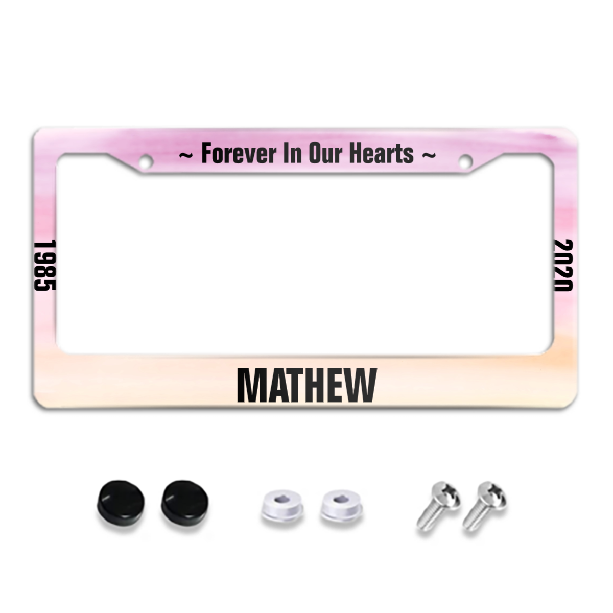 Memorial License Plate with Clouds / Hearts License Plate Frame