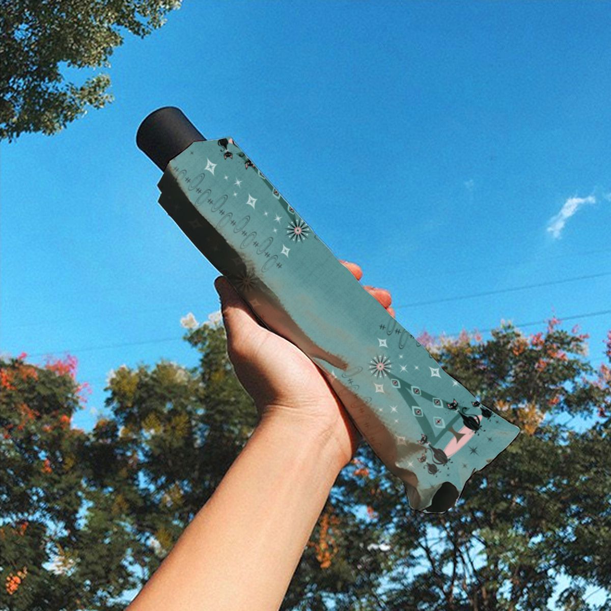 Mid Century Cat Family Holiday Brushed Polyester Umbrella No.7OLYE3