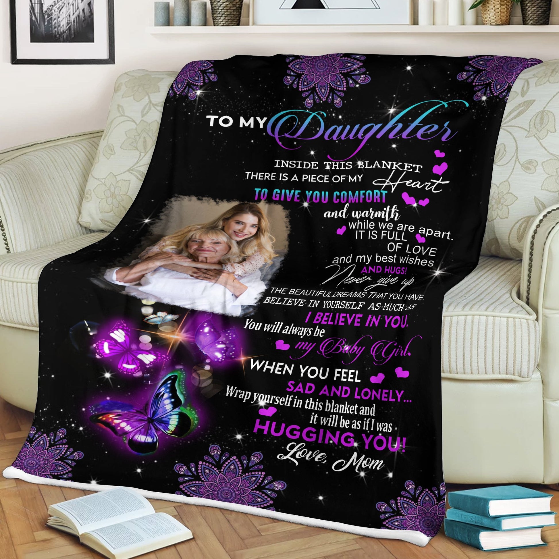 Mom Dad Letter to Daughter Butterfly Art Personalized Blanket with Photo