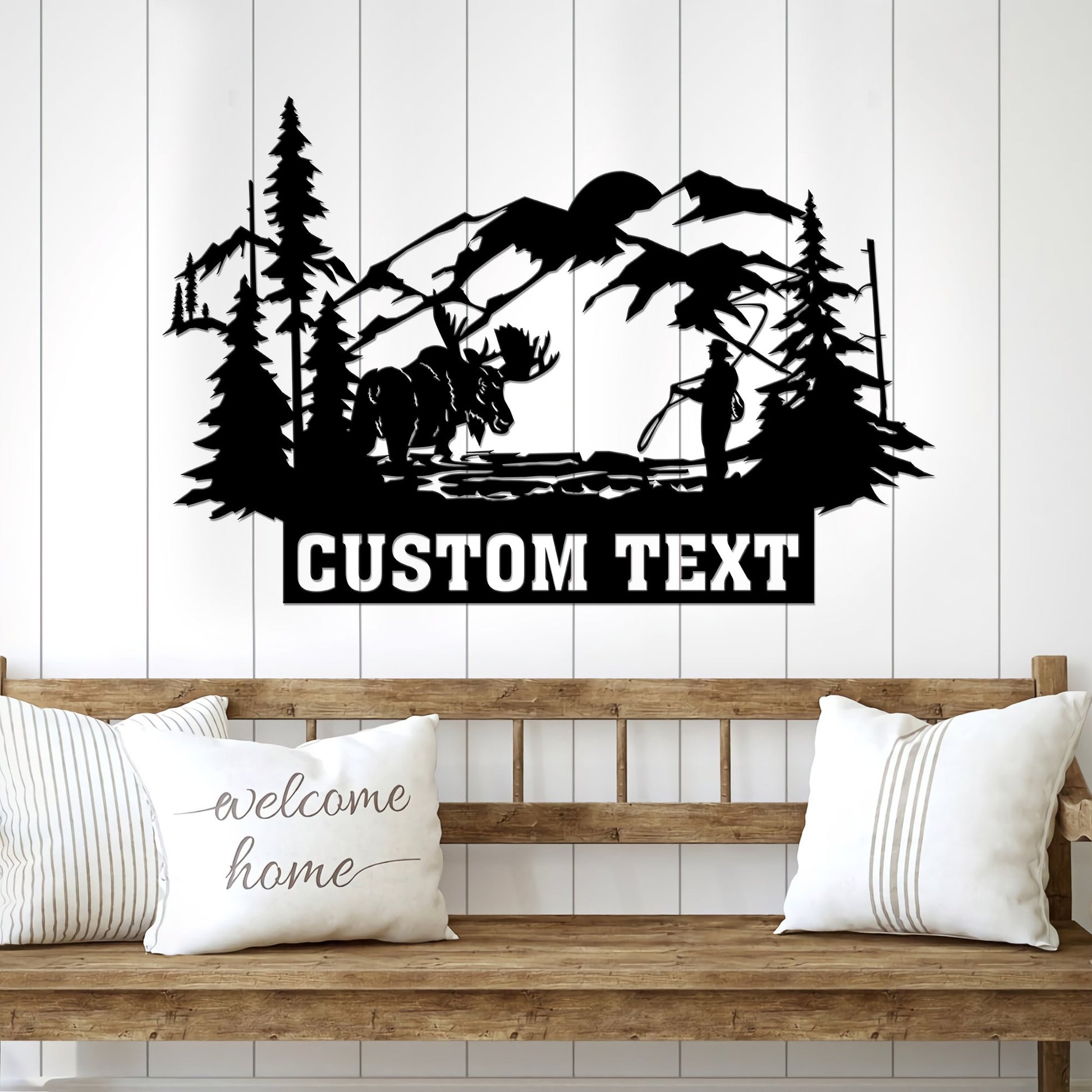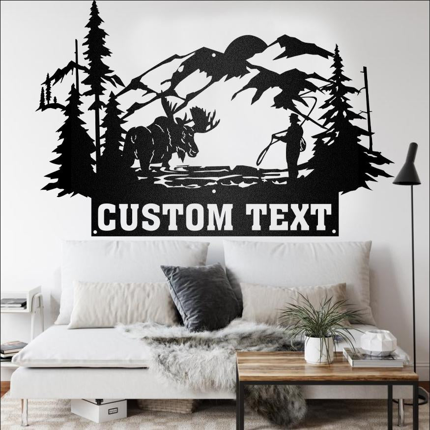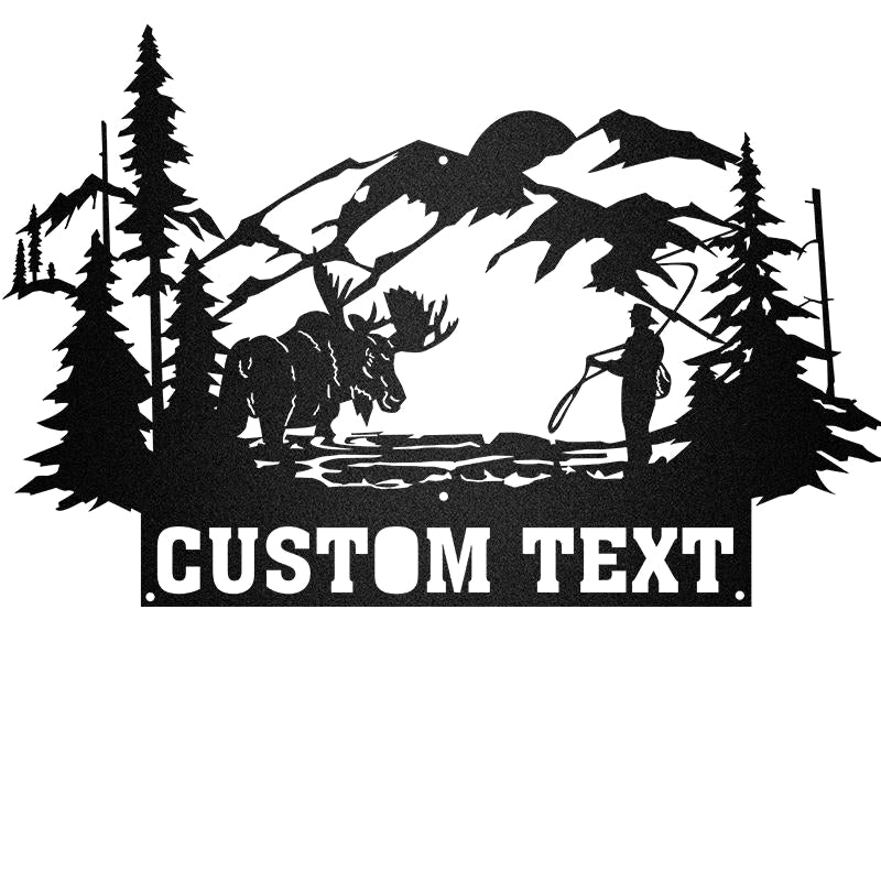 Moose Rustic Custom Text Metal Moose Sign, Last name Moose Sign for Outdoor
