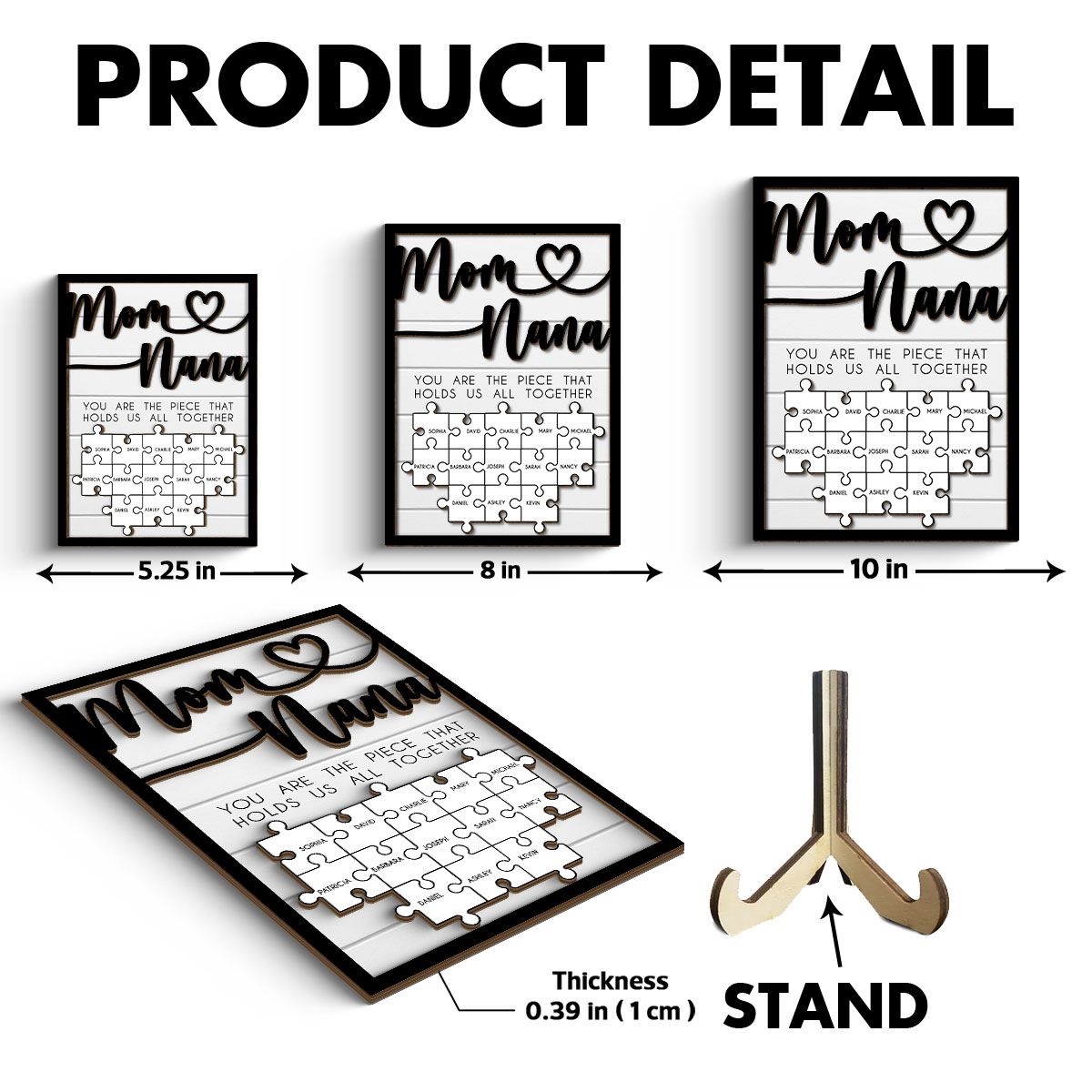 Mothers Day Puzzle Sign for Mom & Grandma, You are the Piece That Holds us Together Personalized 2-Layered Wooden Plaque