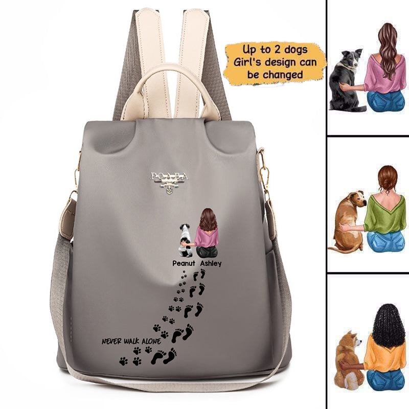 Never Walk Alone Girl And Dogs Personalized Backpack