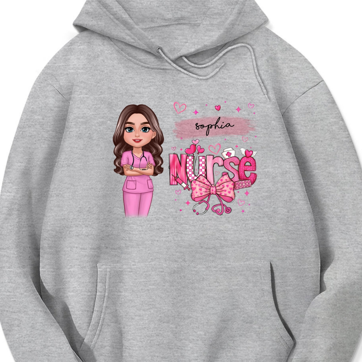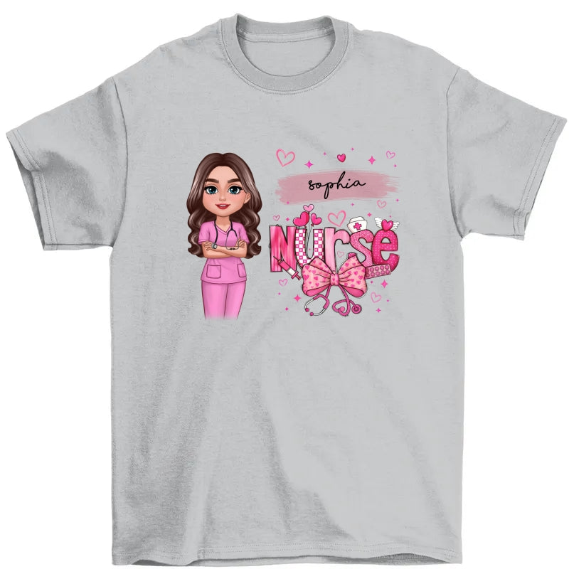 Nurse Pink Coquette Bow Personalized Shirt, Birthday Valentine's Day Gift For Nurse Wife Girlfriend Bestie