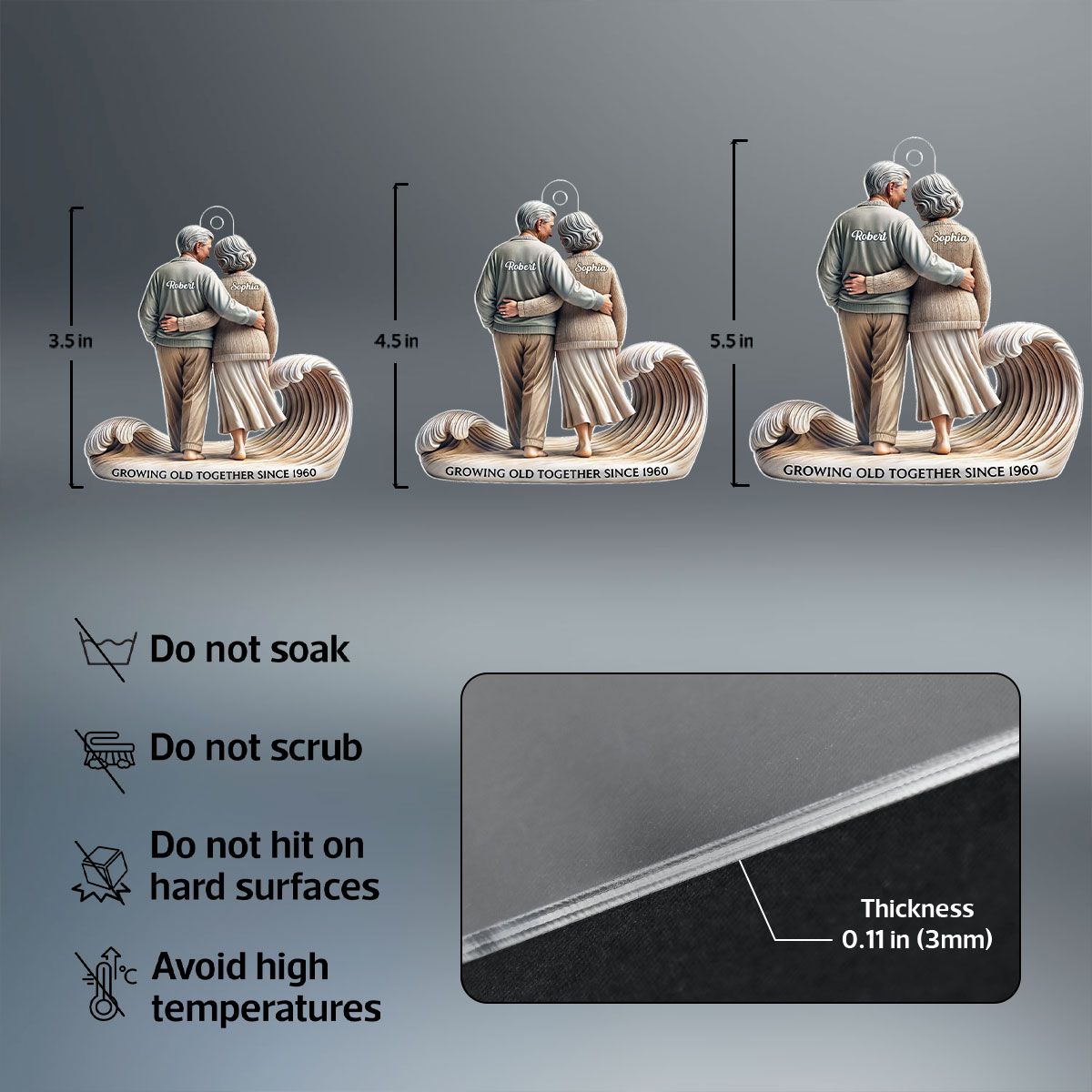Old Couple Embracing Walking Together On The Beach Personalized Car Hanger Ornament, Heartfelt Gift For Couple, For Him, For Her, Husband, Wife