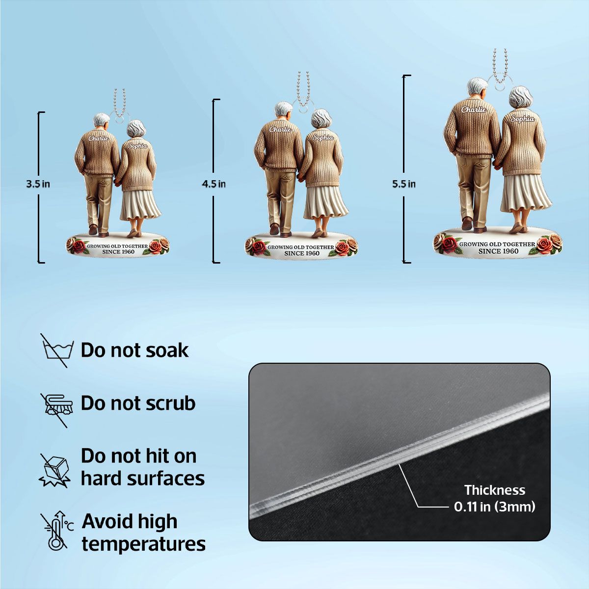 Old Couple Holding Hands Walking Together Personalized Car Hanger Ornament, Heartfelt Gift For Couple, For Him, For Her, Husband, Wife
