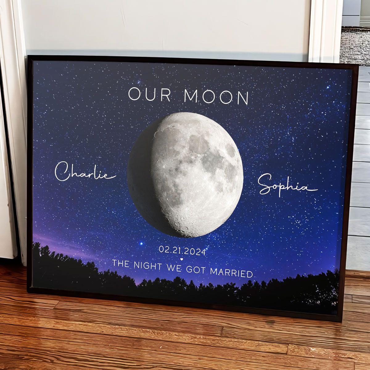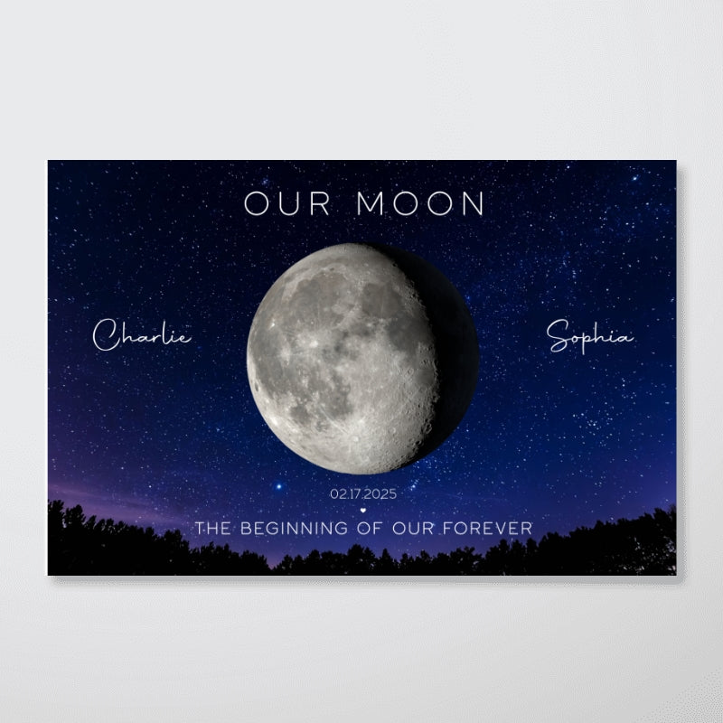 Our Moon Couple Gift Moon Phase Art Anniversary for Wife, Gift for Husband Wedding Anniversary Personalized Canvas