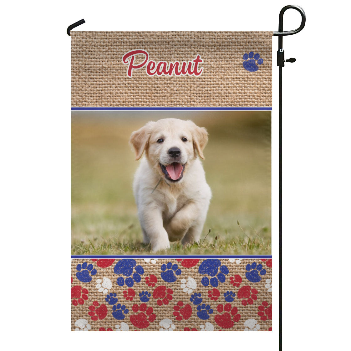 Patriotic Dog Paws & Burlap – Personalized Photo & Name – Garden Flag & House Flag