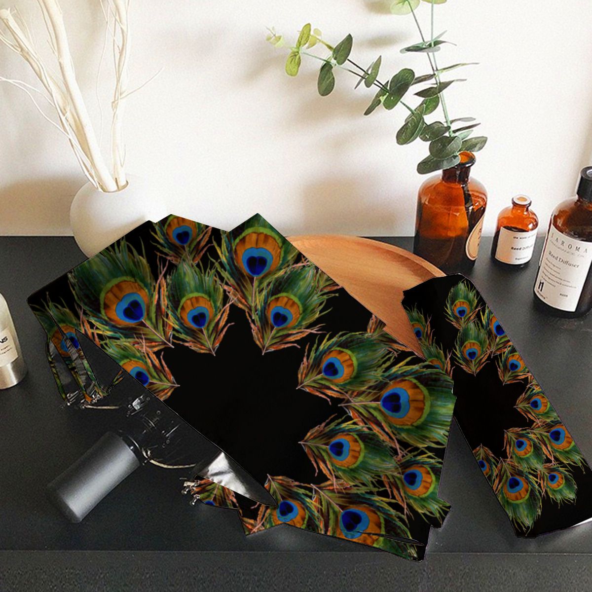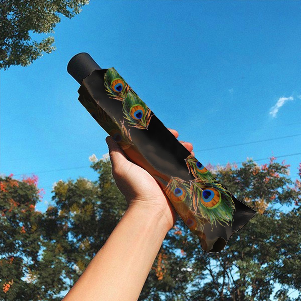 Peacock Feather Black Brushed Polyester Umbrella No.ODSHD5