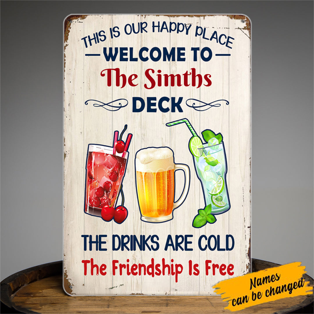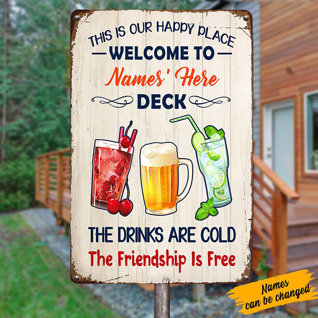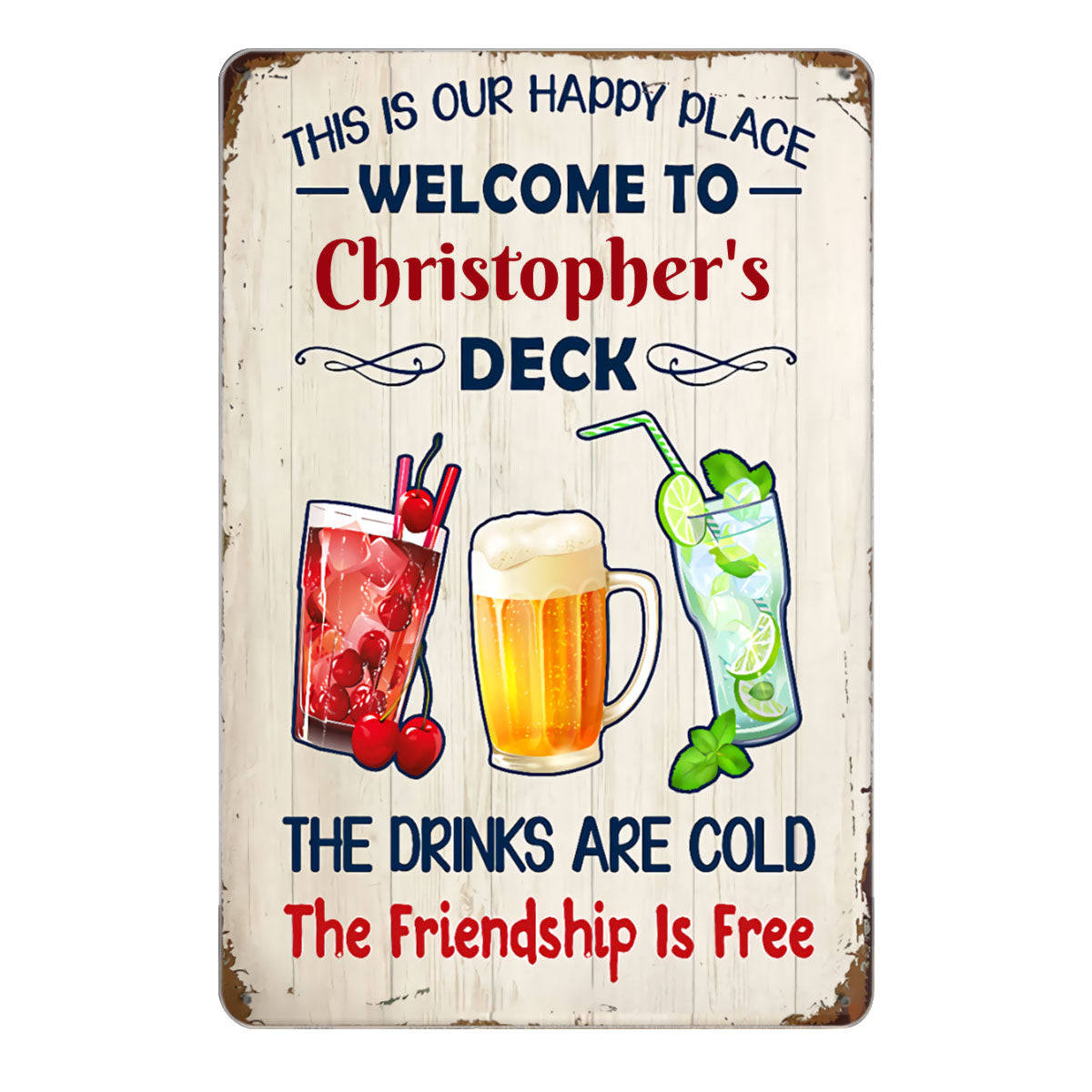 Personalized Backyard Deck Gardening Drink Friendship Metal Sign