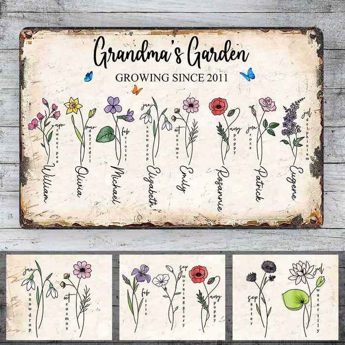 Personalized Mom Grandma Grandkids Garden Metal Sign