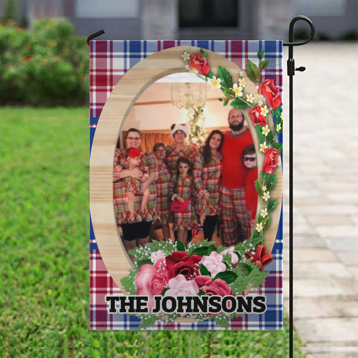 Personalized Roses On Wood Frame House Flag & Garden Flag