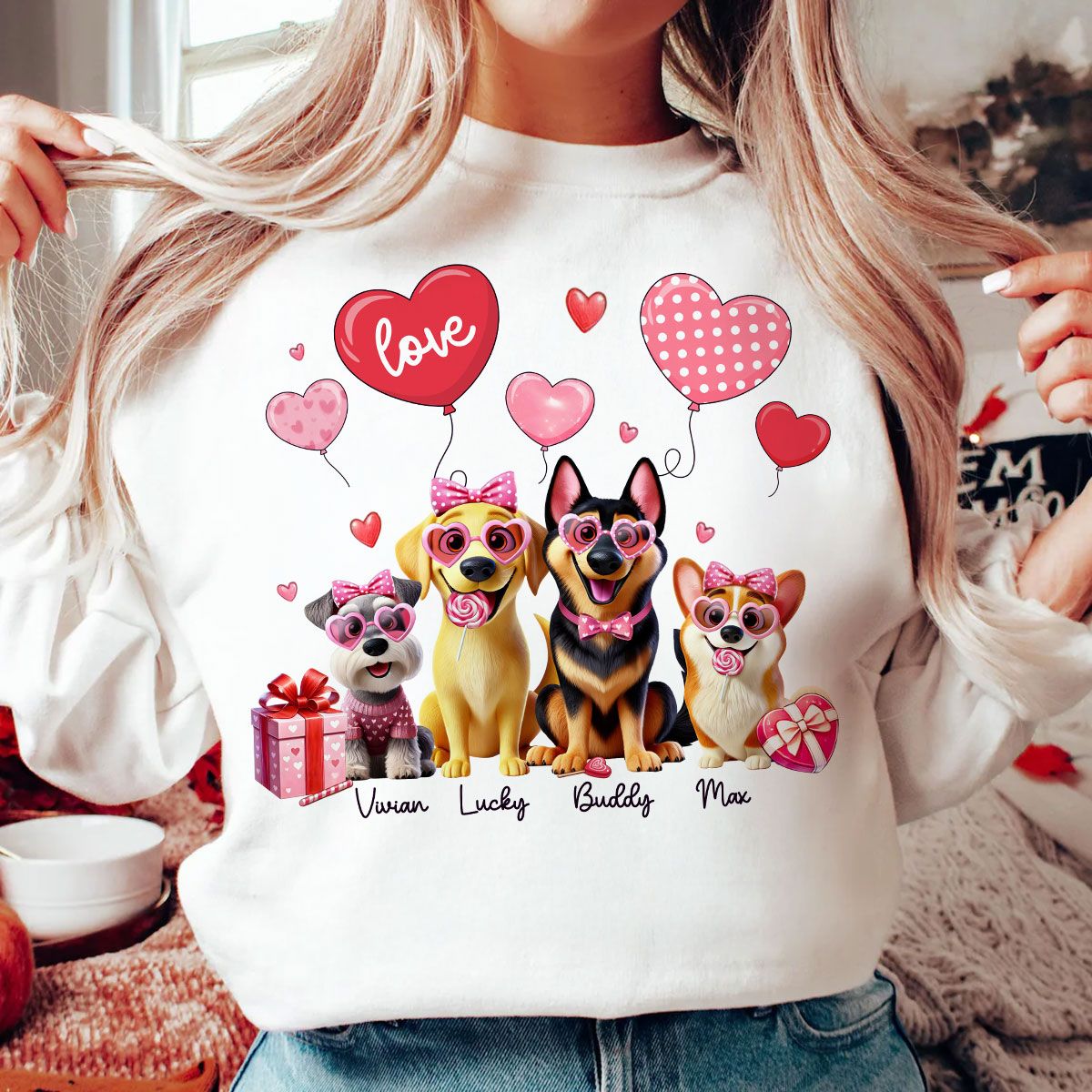 Personalized Valentine Heart Balloon Shirt For Dog Mom, 3D Cute Dogs
