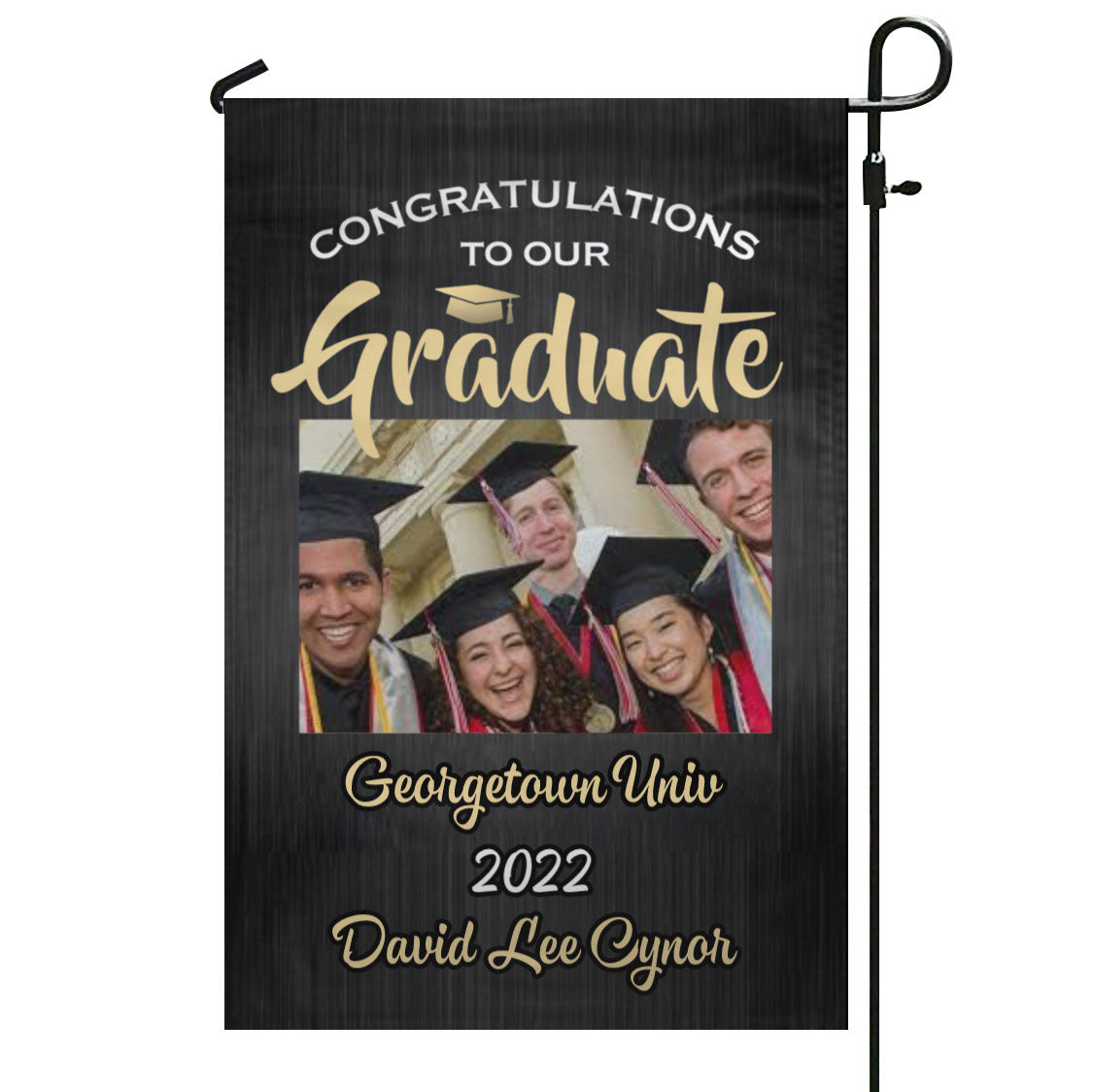 Photo Graduation Brushed Black Gold and White Garden & House Flag